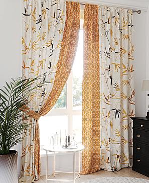 Портьера 2 шт. Подхват - доп.услуга. Комплект штор из легкой портьерной ткани (габардин) оформлен печатным рисунком. Печатный рисунок дает широкие возможности обновить интерьер фактически нет требуя ремонта за счет огромного выбора. Ткани с печатным рисунком безопасны и не содержат токсичных веществ. Не смотря на то что, материал легкий, он имеет высокую плотность, мало загрязнятся и не требует особого ухода даже после стирки, что важно для кухонных занавесок. Шторы не выцветают, не растягиваются, превосходно драпируются, образуя струящиеся складки. Прекрасное решение для создания красоты и уюта с помощью уникальных дизайнов.