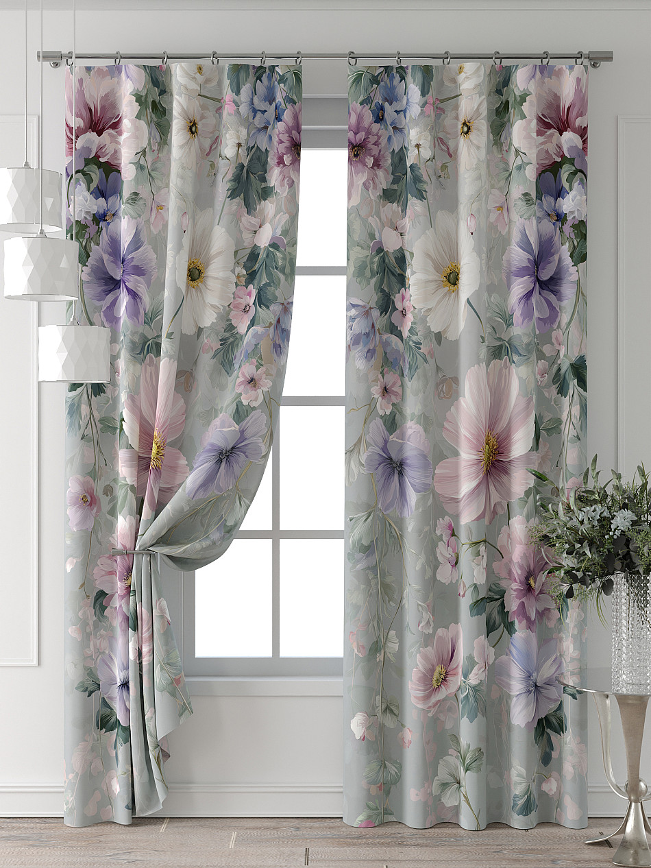 Портьера 2 шт. Подхват - доп.услуга. Комплект штор из легкой портьерной ткани (габардин) оформлен печатным рисунком. Печатный рисунок дает широкие возможности обновить интерьер фактически нет требуя ремонта за счет огромного выбора. Ткани с печатным рисунком безопасны и не содержат токсичных веществ. Не смотря на то что, материал легкий, он имеет высокую плотность, мало загрязнятся и не требует особого ухода даже после стирки, что важно для кухонных занавесок. Шторы не выцветают, не растягиваются, превосходно драпируются, образуя струящиеся складки. Прекрасное решение для создания красоты и уюта с помощью уникальных дизайнов.