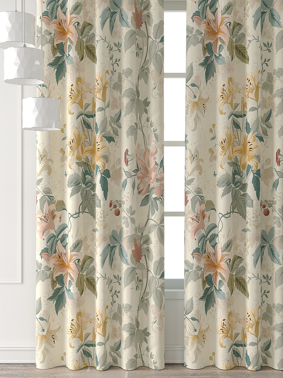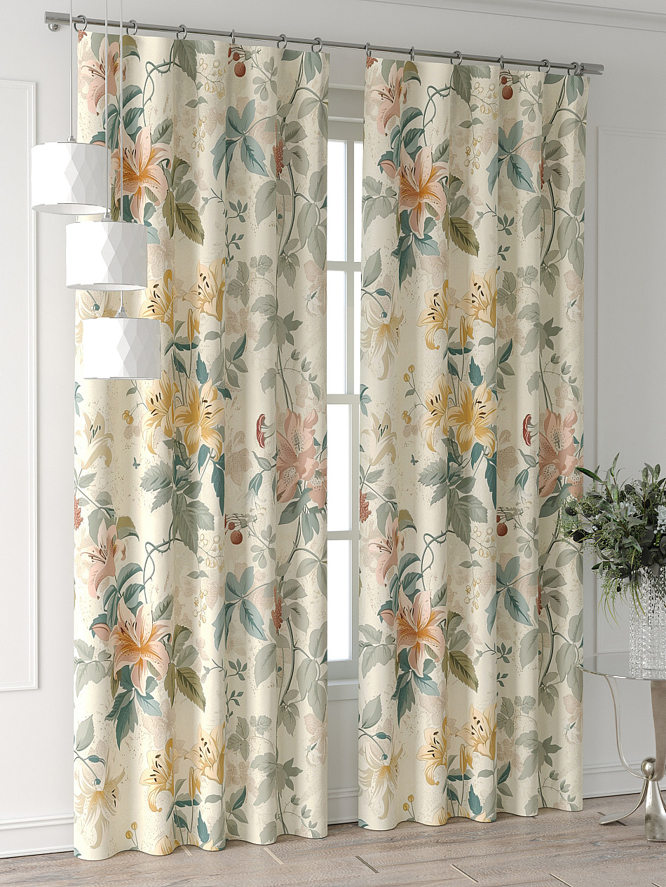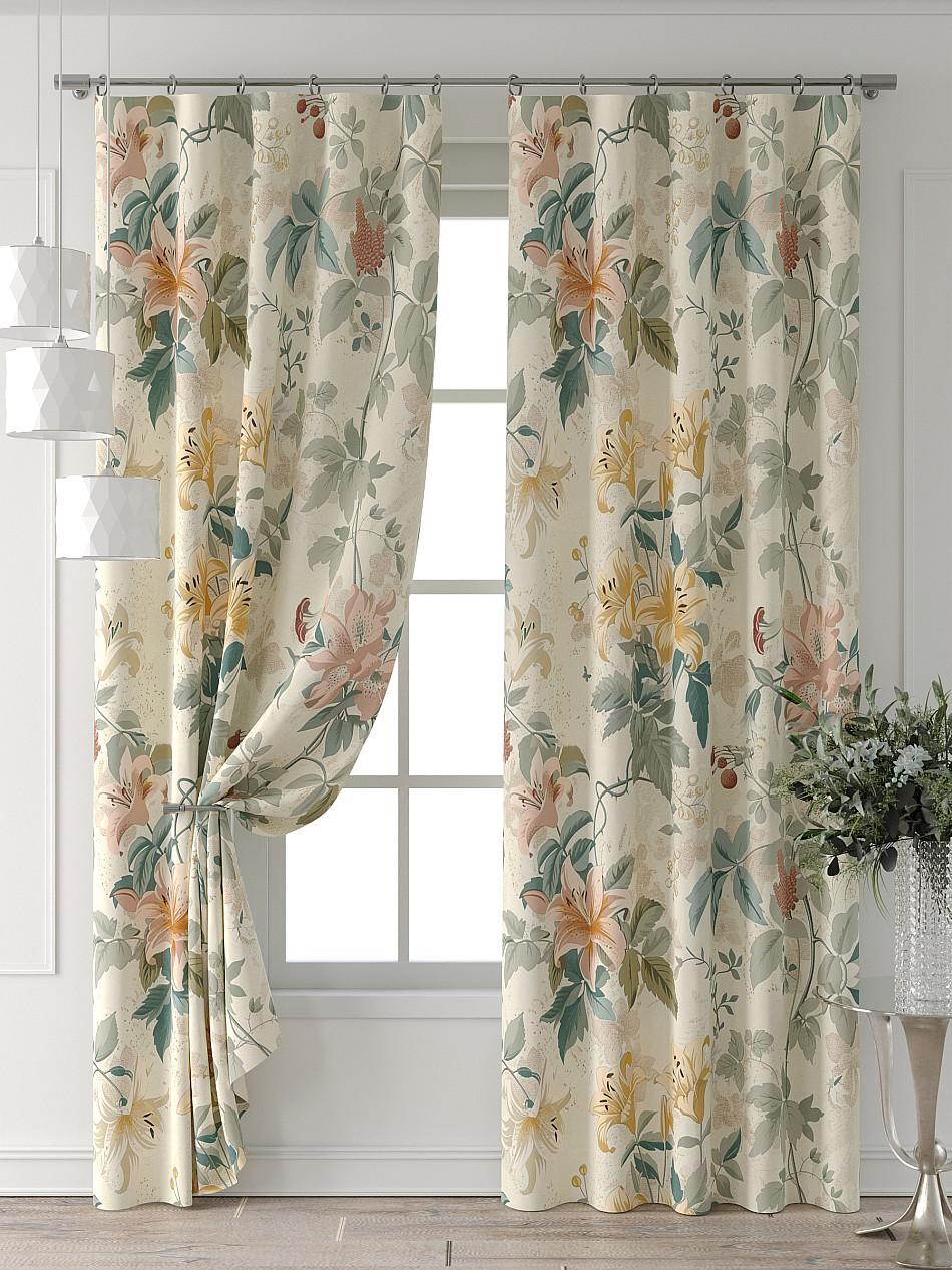 Портьера 2 шт. Подхват - доп.услуга. Комплект штор из легкой портьерной ткани (габардин) оформлен печатным рисунком. Печатный рисунок дает широкие возможности обновить интерьер фактически нет требуя ремонта за счет огромного выбора. Ткани с печатным рисунком безопасны и не содержат токсичных веществ. Не смотря на то что, материал легкий, он имеет высокую плотность, мало загрязнятся и не требует особого ухода даже после стирки, что важно для кухонных занавесок. Шторы не выцветают, не растягиваются, превосходно драпируются, образуя струящиеся складки. Прекрасное решение для создания красоты и уюта с помощью уникальных дизайнов.