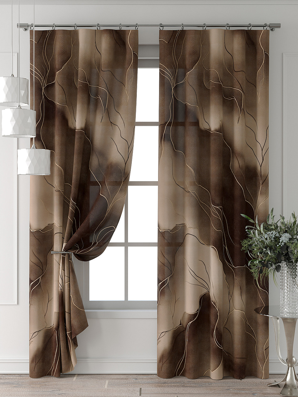 Портьеры 2 шт: Комплект штор из портьерной ткани с печатным рисунком. Фактура ткани прекрасно гармонирует с любым интерьером, а печатный рисунок дает широкие возможности обновить интерьер, фактически не требуя ремонта, за счет огромного выбора. Ткань износостойкая и не требует особого ухода, превосходно драпируется образуя струящиеся складки. Прекрасное решение для создания красоты и уюта с помощью уникальных дизайнов.