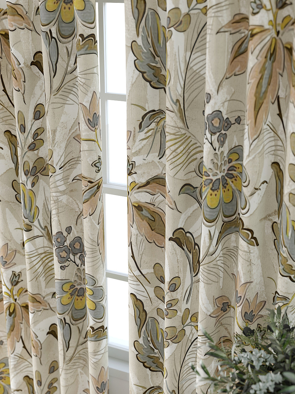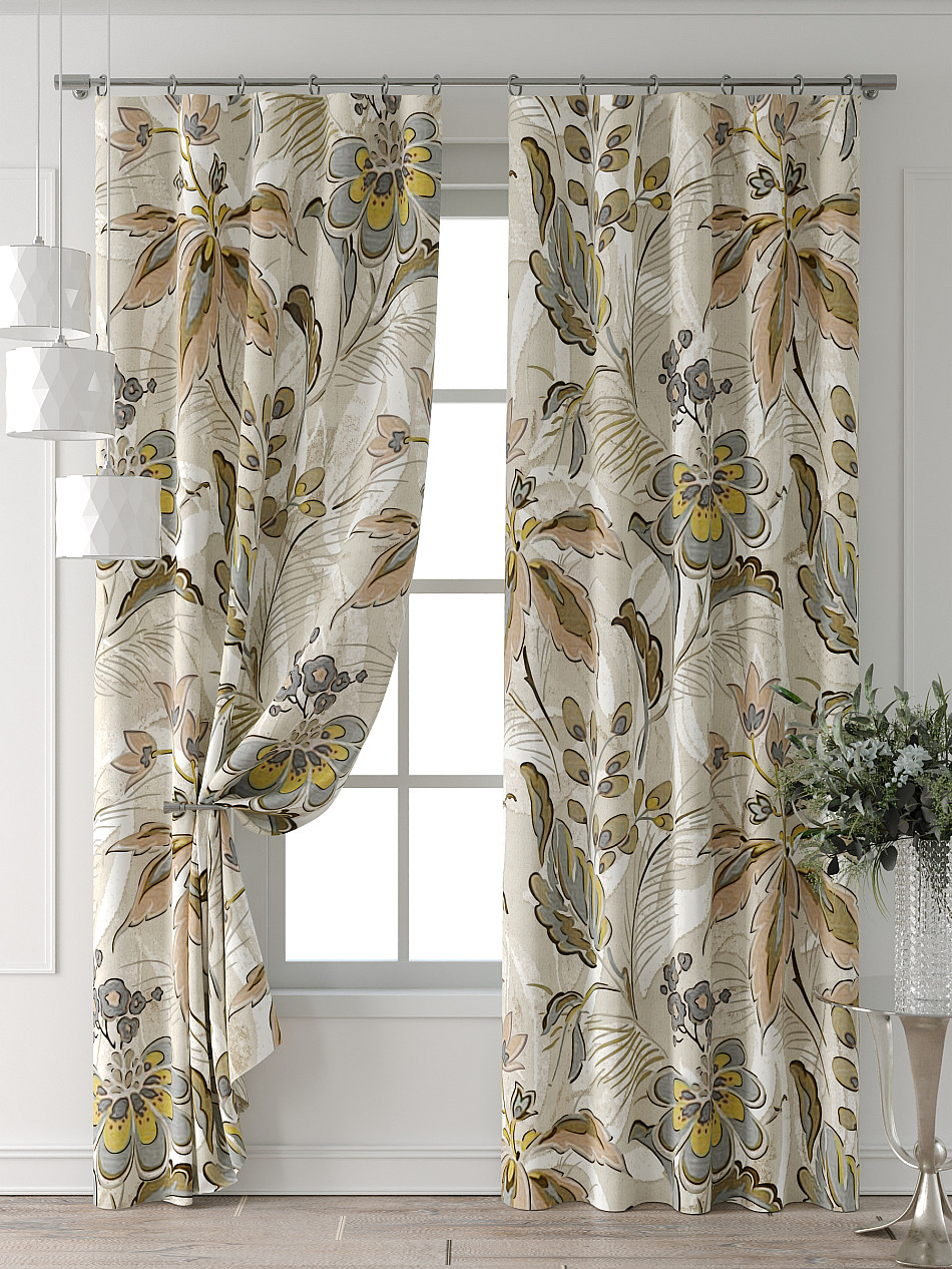 Портьера 2 шт. Подхват - доп.услуга. Комплект штор из легкой портьерной ткани (габардин) оформлен печатным рисунком. Печатный рисунок дает широкие возможности обновить интерьер фактически нет требуя ремонта за счет огромного выбора. Ткани с печатным рисунком безопасны и не содержат токсичных веществ. Не смотря на то что, материал легкий, он имеет высокую плотность, мало загрязнятся и не требует особого ухода даже после стирки, что важно для кухонных занавесок. Шторы не выцветают, не растягиваются, превосходно драпируются, образуя струящиеся складки. Прекрасное решение для создания красоты и уюта с помощью уникальных дизайнов.