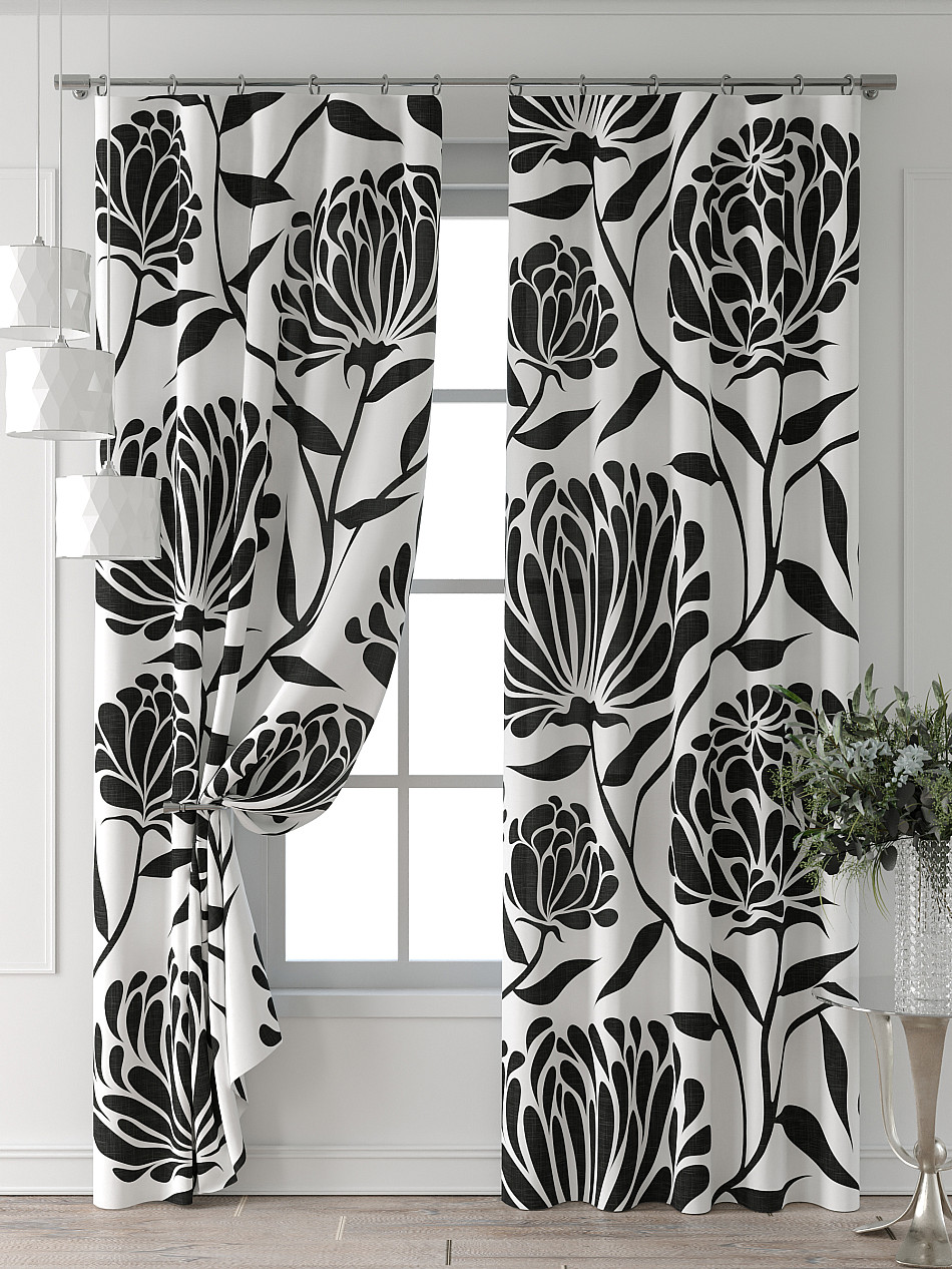 Портьера 2 шт. Подхват - доп.услуга. Комплект штор из легкой портьерной ткани (габардин) оформлен печатным рисунком. Печатный рисунок дает широкие возможности обновить интерьер фактически нет требуя ремонта за счет огромного выбора. Ткани с печатным рисунком безопасны и не содержат токсичных веществ. Не смотря на то что, материал легкий, он имеет высокую плотность, мало загрязнятся и не требует особого ухода даже после стирки, что важно для кухонных занавесок. Шторы не выцветают, не растягиваются, превосходно драпируются, образуя струящиеся складки. Прекрасное решение для создания красоты и уюта с помощью уникальных дизайнов.