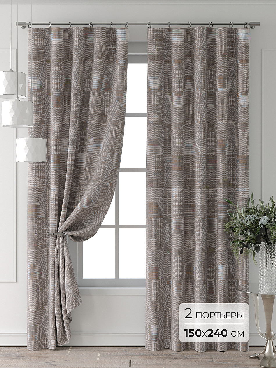 Портьера 150х240 см — 2 шт. ( Изменить высоту) Крепление: шторная лента (крючки), кулиска Подробнее