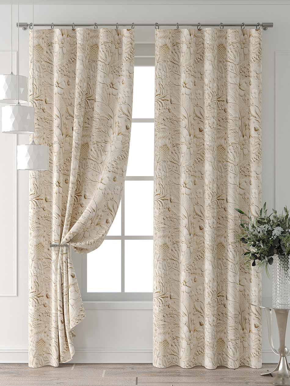 Портьера 150х260 см. — 2 шт. ( Изменить высоту) Крепление: шторная лента (крючки) Подробнее