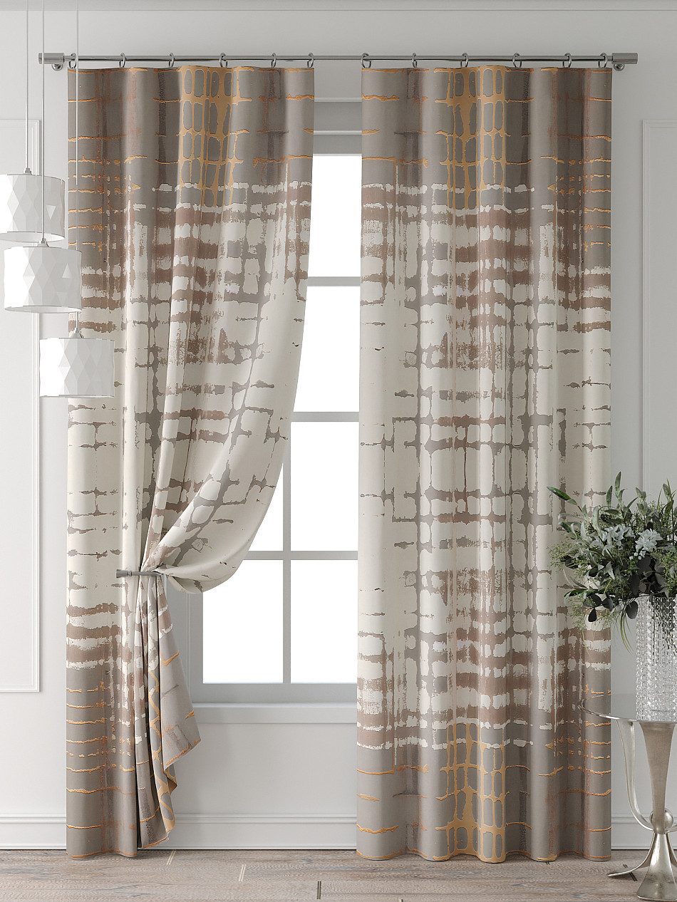 Портьера 2 шт. Подхват - доп.услуга. Комплект штор из легкой портьерной ткани (габардин) оформлен печатным рисунком. Печатный рисунок дает широкие возможности обновить интерьер фактически нет требуя ремонта за счет огромного выбора. Ткани с печатным рисунком безопасны и не содержат токсичных веществ. Не смотря на то что, материал легкий, он имеет высокую плотность, мало загрязнятся и не требует особого ухода даже после стирки, что важно для кухонных занавесок. Шторы не выцветают, не растягиваются, превосходно драпируются, образуя струящиеся складки. Прекрасное решение для создания красоты и уюта с помощью уникальных дизайнов.