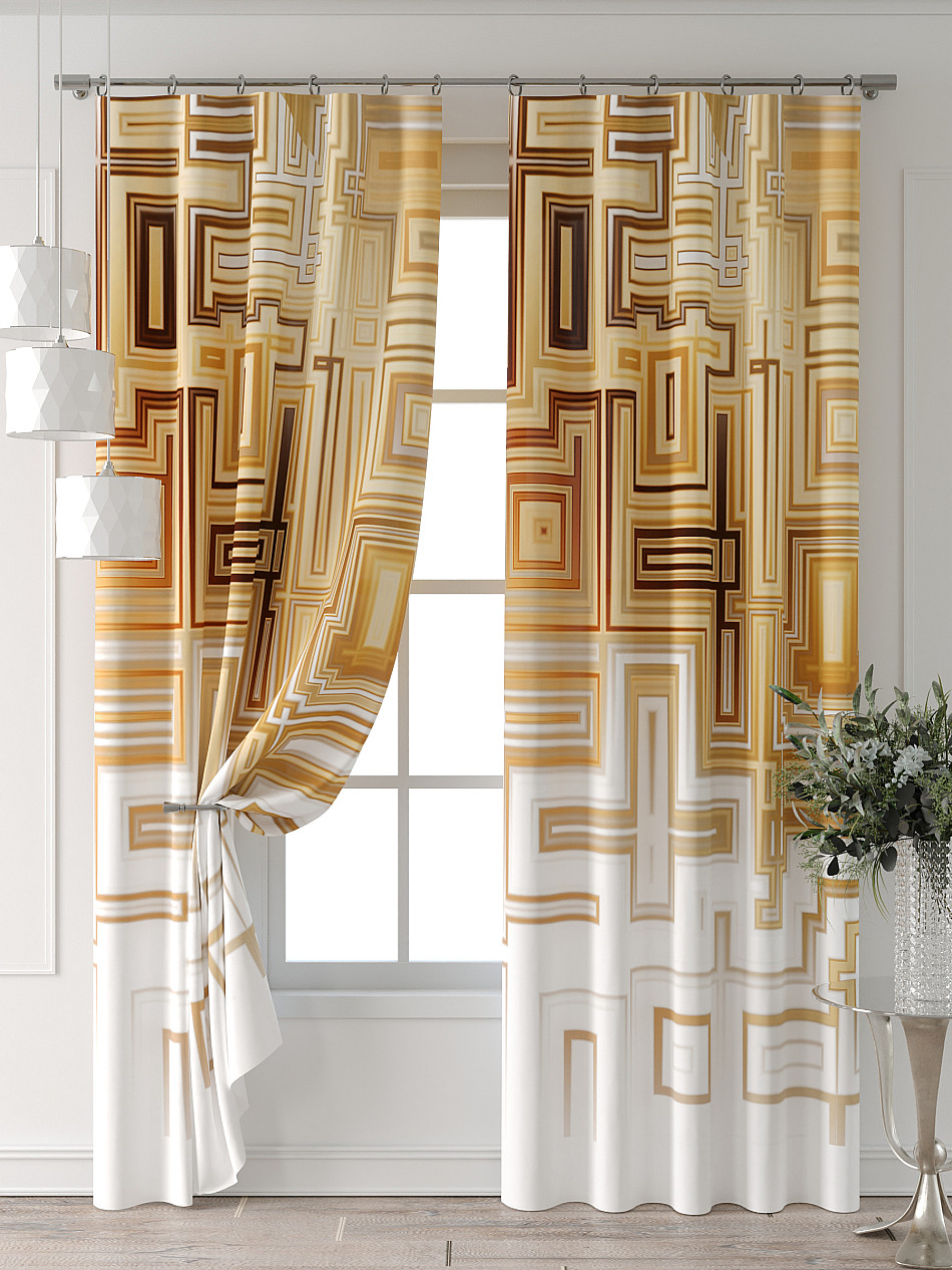 Портьеры 2 шт: Комплект штор из портьерной ткани с печатным рисунком. Фактура ткани прекрасно гармонирует с любым интерьером, а печатный рисунок дает широкие возможности обновить интерьер, фактически не требуя ремонта, за счет огромного выбора. Ткань износостойкая и не требует особого ухода, превосходно драпируется образуя струящиеся складки. Прекрасное решение для создания красоты и уюта с помощью уникальных дизайнов.