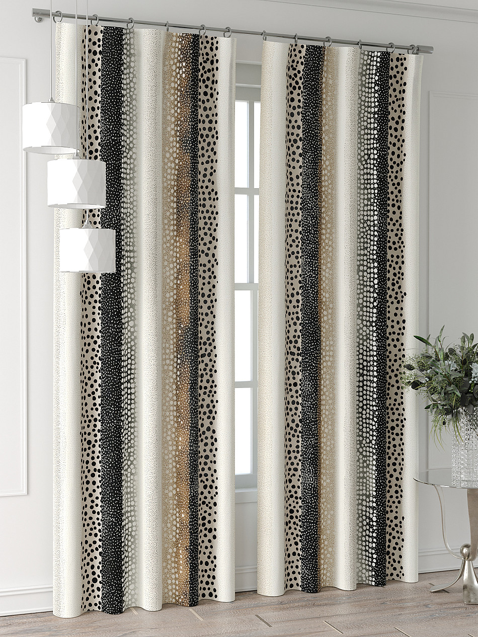 По верхнему краю портьер пришита шторная тесьма 6 см, с ее помощью затянув узелки от кордовых нитей с обеих сторон и стянув их до нужного размера можно сформировать округлые складки, далее вставить крючки в кармашки и повесить на карниз. Обязательно проверьте кордовые нити – они должны быть надежно завязаны, в противном случае во время стягивания они могут вылететь. Шторная тесьма имеет два ряда кармашков, с их помощью можно регулировать не только длину, но и ширину. Такое крепление подходит для всех типов карнизов.