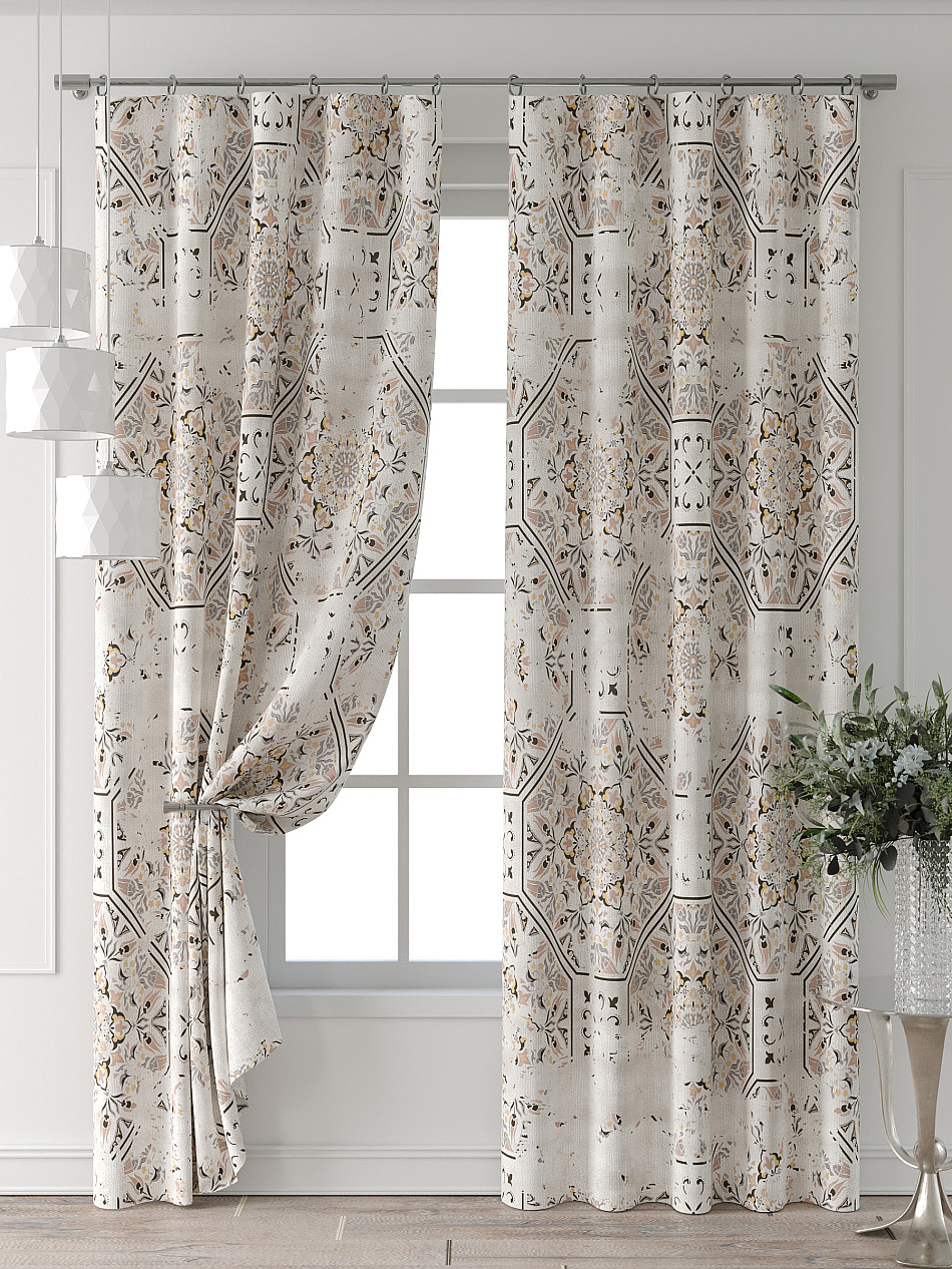 Портьера 2 шт. Подхват - доп.услуга. Комплект штор из легкой портьерной ткани (габардин) оформлен печатным рисунком. Печатный рисунок дает широкие возможности обновить интерьер фактически нет требуя ремонта за счет огромного выбора. Ткани с печатным рисунком безопасны и не содержат токсичных веществ. Не смотря на то что, материал легкий, он имеет высокую плотность, мало загрязнятся и не требует особого ухода даже после стирки, что важно для кухонных занавесок. Шторы не выцветают, не растягиваются, превосходно драпируются, образуя струящиеся складки. Прекрасное решение для создания красоты и уюта с помощью уникальных дизайнов.