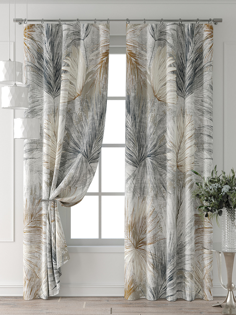 Портьера 2 шт. Подхват - доп.услуга. Комплект штор из легкой портьерной ткани (габардин) оформлен печатным рисунком. Печатный рисунок дает широкие возможности обновить интерьер фактически нет требуя ремонта за счет огромного выбора. Ткани с печатным рисунком безопасны и не содержат токсичных веществ. Не смотря на то что, материал легкий, он имеет высокую плотность, мало загрязнятся и не требует особого ухода даже после стирки, что важно для кухонных занавесок. Шторы не выцветают, не растягиваются, превосходно драпируются, образуя струящиеся складки. Прекрасное решение для создания красоты и уюта с помощью уникальных дизайнов.