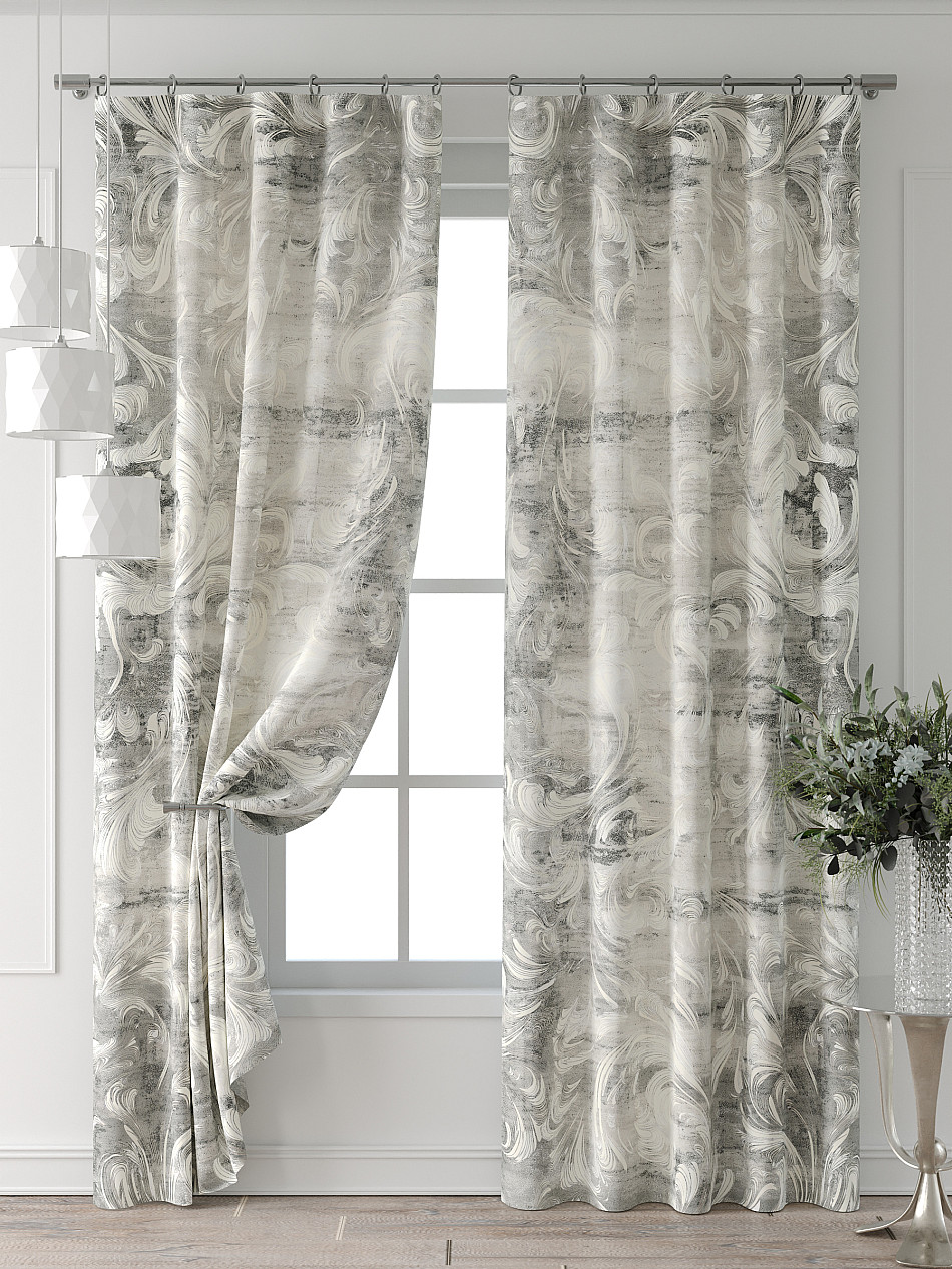 - Шторы с вензелями серые