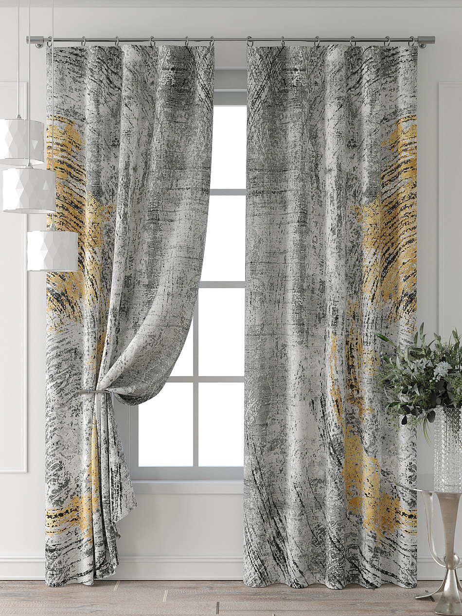 Портьера 2 шт. Подхват - доп.услуга. Комплект штор из легкой портьерной ткани (габардин) оформлен печатным рисунком. Печатный рисунок дает широкие возможности обновить интерьер фактически нет требуя ремонта за счет огромного выбора. Ткани с печатным рисунком безопасны и не содержат токсичных веществ. Не смотря на то что, материал легкий, он имеет высокую плотность, мало загрязнятся и не требует особого ухода даже после стирки, что важно для кухонных занавесок. Шторы не выцветают, не растягиваются, превосходно драпируются, образуя струящиеся складки. Прекрасное решение для создания красоты и уюта с помощью уникальных дизайнов.