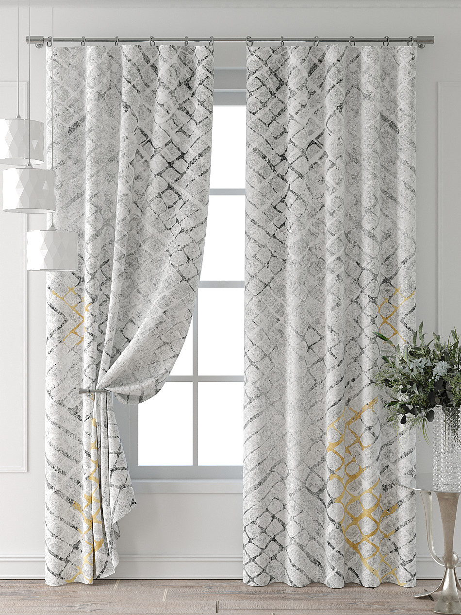 Портьера 2 шт. Подхват - доп.услуга. Комплект штор из легкой портьерной ткани (габардин) оформлен печатным рисунком. Печатный рисунок дает широкие возможности обновить интерьер фактически нет требуя ремонта за счет огромного выбора. Ткани с печатным рисунком безопасны и не содержат токсичных веществ. Не смотря на то что, материал легкий, он имеет высокую плотность, мало загрязнятся и не требует особого ухода даже после стирки, что важно для кухонных занавесок. Шторы не выцветают, не растягиваются, превосходно драпируются, образуя струящиеся складки. Прекрасное решение для создания красоты и уюта с помощью уникальных дизайнов.