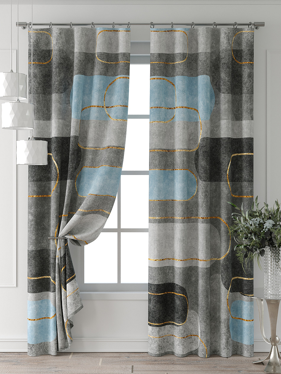 Портьера 2 шт. Подхват - доп.услуга. Комплект штор из легкой портьерной ткани (габардин) оформлен печатным рисунком. Печатный рисунок дает широкие возможности обновить интерьер фактически нет требуя ремонта за счет огромного выбора. Ткани с печатным рисунком безопасны и не содержат токсичных веществ. Не смотря на то что, материал легкий, он имеет высокую плотность, мало загрязнятся и не требует особого ухода даже после стирки, что важно для кухонных занавесок. Шторы не выцветают, не растягиваются, превосходно драпируются, образуя струящиеся складки. Прекрасное решение для создания красоты и уюта с помощью уникальных дизайнов.