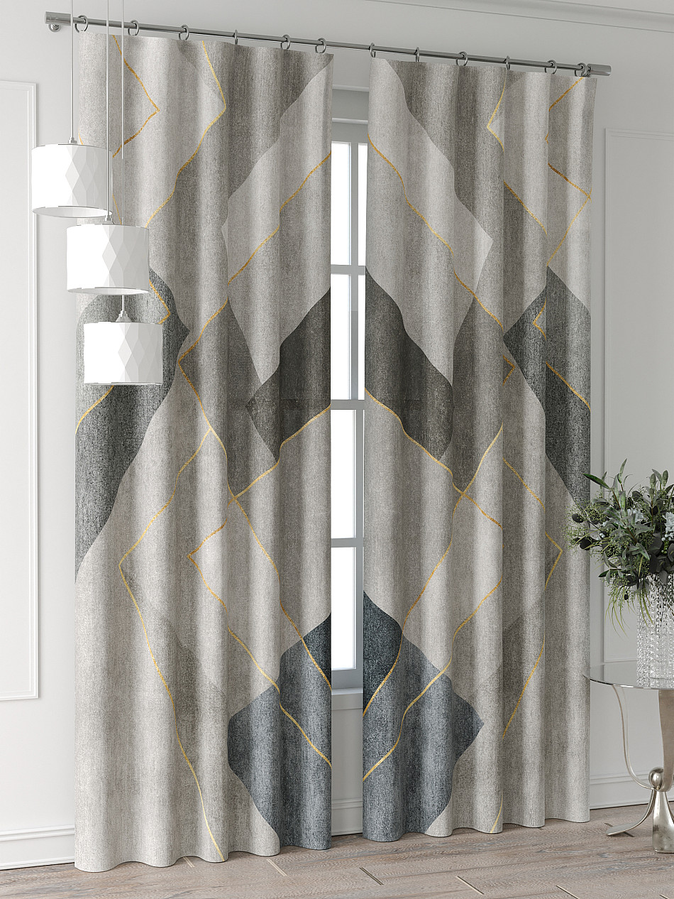 Портьера 2 шт. Подхват - доп.услуга. Комплект штор из легкой портьерной ткани (габардин) оформлен печатным рисунком. Печатный рисунок дает широкие возможности обновить интерьер фактически нет требуя ремонта за счет огромного выбора. Ткани с печатным рисунком безопасны и не содержат токсичных веществ. Не смотря на то что, материал легкий, он имеет высокую плотность, мало загрязнятся и не требует особого ухода даже после стирки, что важно для кухонных занавесок. Шторы не выцветают, не растягиваются, превосходно драпируются, образуя струящиеся складки. Прекрасное решение для создания красоты и уюта с помощью уникальных дизайнов.
