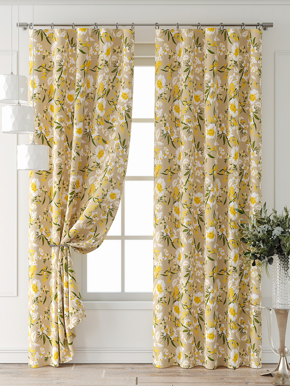 Портьера 2 шт. Подхват - доп.услуга. Комплект штор из легкой портьерной ткани (габардин) оформлен печатным рисунком. Печатный рисунок дает широкие возможности обновить интерьер фактически нет требуя ремонта за счет огромного выбора. Ткани с печатным рисунком безопасны и не содержат токсичных веществ. Не смотря на то что, материал легкий, он имеет высокую плотность, мало загрязнятся и не требует особого ухода даже после стирки, что важно для кухонных занавесок. Шторы не выцветают, не растягиваются, превосходно драпируются, образуя струящиеся складки. Прекрасное решение для создания красоты и уюта с помощью уникальных дизайнов.