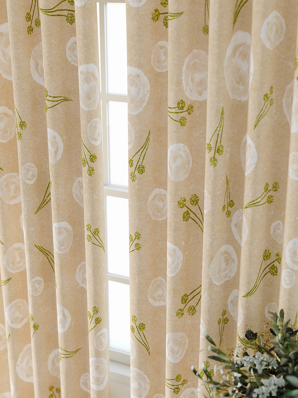 По верхнему краю портьер пришита шторная тесьма 6 см, с ее помощью затянув узелки от кордовых нитей с обеих сторон и стянув их до нужного размера можно сформировать округлые складки, далее вставить крючки в кармашки и повесить на карниз. Обязательно проверьте кордовые нити – они должны быть надежно завязаны, в противном случае во время стягивания они могут вылететь. Шторная тесьма имеет два ряда кармашков, с их помощью можно регулировать не только длину, но и ширину. Такое крепление подходит для всех типов карнизов.