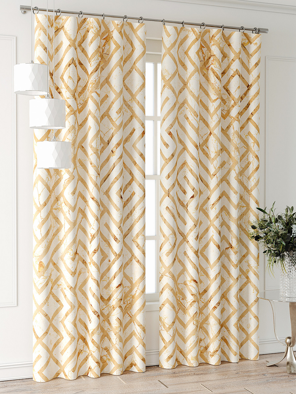 Портьеры 2 шт: Комплект штор из портьерной ткани с печатным рисунком. Фактура ткани прекрасно гармонирует с любым интерьером, а печатный рисунок дает широкие возможности обновить интерьер, фактически не требуя ремонта, за счет огромного выбора. Ткань износостойкая и не требует особого ухода, превосходно драпируется образуя струящиеся складки. Прекрасное решение для создания красоты и уюта с помощью уникальных дизайнов.