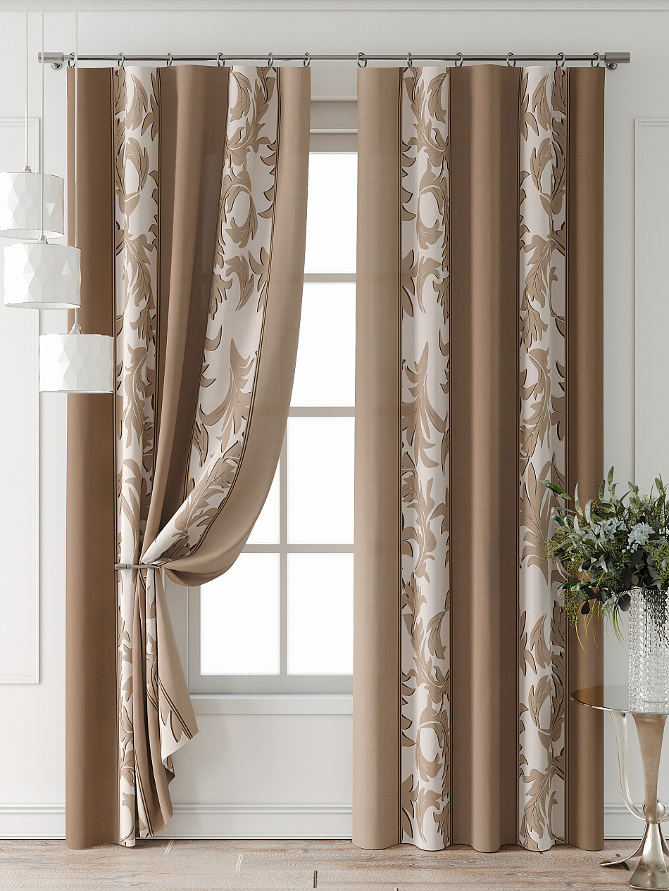 Портьера 150х240 см — 2 шт. ( Изменить высоту) Крепление: шторная лента (крючки), кулиска Подробнее