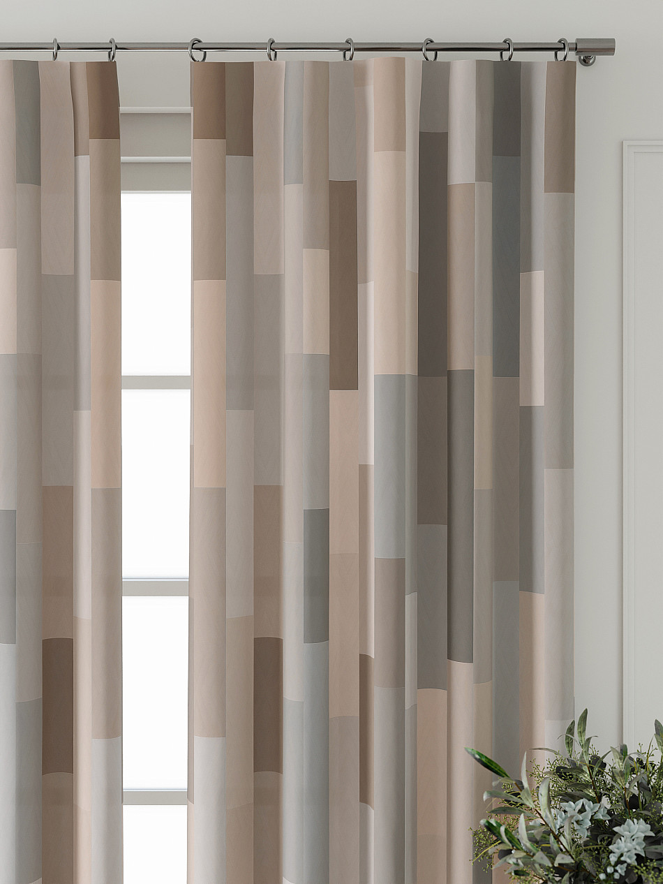 По верхнему краю портьер пришита шторная тесьма 6 см, с ее помощью затянув узелки от кордовых нитей с обеих сторон и стянув их до нужного размера можно сформировать округлые складки, далее вставить крючки в кармашки и повесить на карниз. Обязательно проверьте кордовые нити – они должны быть надежно завязаны, в противном случае во время стягивания они могут вылететь. Шторная тесьма имеет два ряда кармашков, с их помощью можно регулировать не только длину, но и ширину. Такое крепление подходит для всех типов карнизов.
