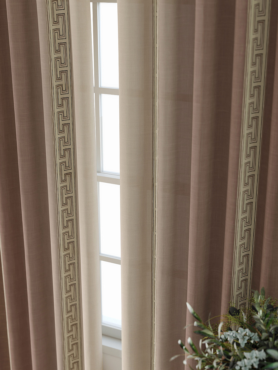 По верхнему краю портьер пришита шторная тесьма 6 см, с ее помощью затянув узелки от кордовых нитей с обеих сторон и стянув их до нужного размера можно сформировать округлые складки, далее вставить крючки в кармашки и повесить на карниз. Обязательно проверьте кордовые нити – они должны быть надежно завязаны, в противном случае во время стягивания они могут вылететь. Шторная тесьма имеет два ряда кармашков, с их помощью можно регулировать не только длину, но и ширину. Такое крепление подходит для всех типов карнизов.