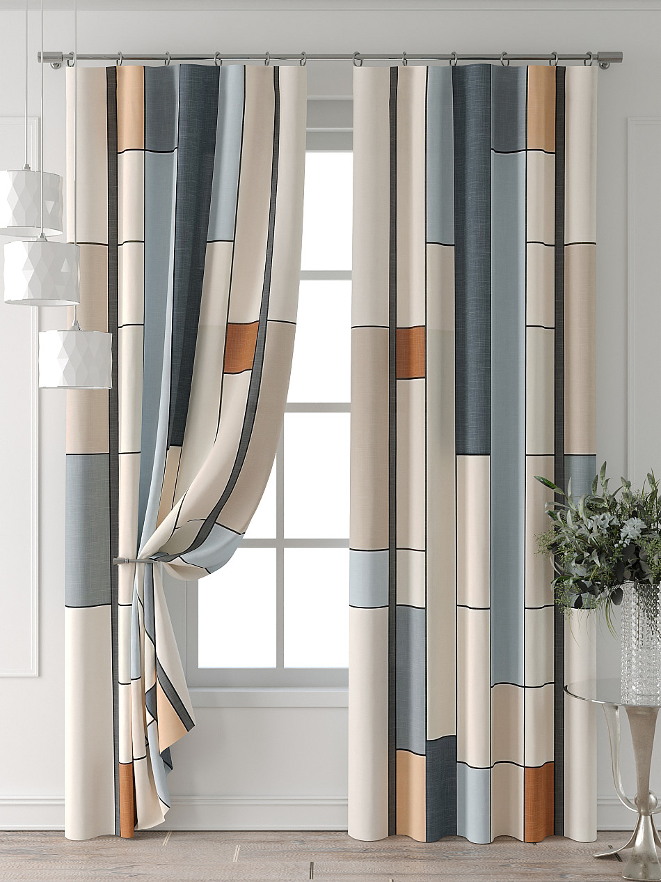Портьера 2 шт. Подхват - доп.услуга. Комплект штор из легкой портьерной ткани (габардин) оформлен печатным рисунком. Печатный рисунок дает широкие возможности обновить интерьер фактически нет требуя ремонта за счет огромного выбора. Ткани с печатным рисунком безопасны и не содержат токсичных веществ. Не смотря на то что, материал легкий, он имеет высокую плотность, мало загрязнятся и не требует особого ухода даже после стирки, что важно для кухонных занавесок. Шторы не выцветают, не растягиваются, превосходно драпируются, образуя струящиеся складки. Прекрасное решение для создания красоты и уюта с помощью уникальных дизайнов.