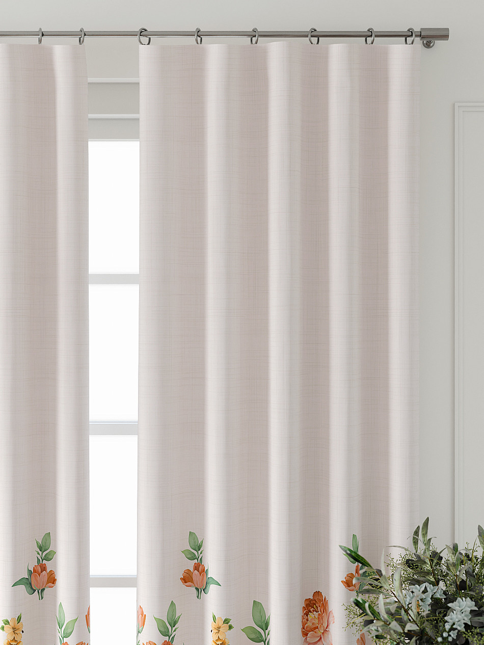 По верхнему краю портьер пришита шторная тесьма 6 см, с ее помощью затянув узелки от кордовых нитей с обеих сторон и стянув их до нужного размера можно сформировать округлые складки, далее вставить крючки в кармашки и повесить на карниз. Обязательно проверьте кордовые нити – они должны быть надежно завязаны, в противном случае во время стягивания они могут вылететь. Шторная тесьма имеет два ряда кармашков, с их помощью можно регулировать не только длину, но и ширину. Такое крепление подходит для всех типов карнизов.
