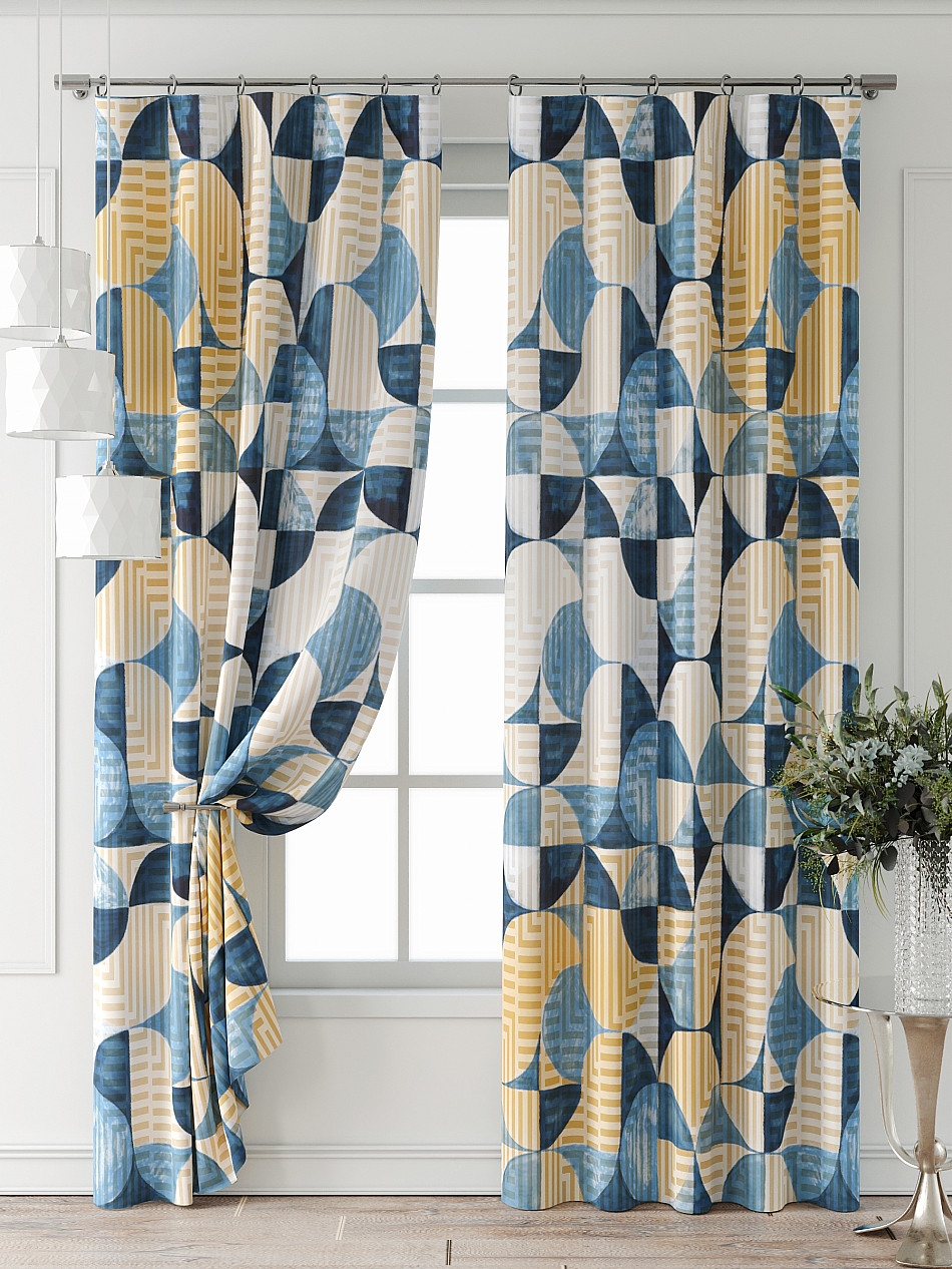 Портьера 2 шт. Подхват - доп.услуга. Комплект штор из легкой портьерной ткани (габардин) оформлен печатным рисунком. Печатный рисунок дает широкие возможности обновить интерьер фактически нет требуя ремонта за счет огромного выбора. Ткани с печатным рисунком безопасны и не содержат токсичных веществ. Не смотря на то что, материал легкий, он имеет высокую плотность, мало загрязнятся и не требует особого ухода даже после стирки, что важно для кухонных занавесок. Шторы не выцветают, не растягиваются, превосходно драпируются, образуя струящиеся складки. Прекрасное решение для создания красоты и уюта с помощью уникальных дизайнов.