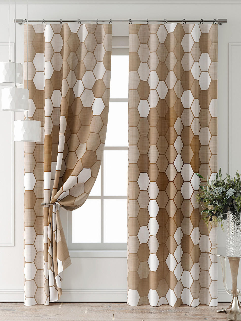 Портьеры 2 шт: Комплект штор из портьерной ткани с печатным рисунком. Фактура ткани прекрасно гармонирует с любым интерьером, а печатный рисунок дает широкие возможности обновить интерьер, фактически не требуя ремонта, за счет огромного выбора. Ткань износостойкая и не требует особого ухода, превосходно драпируется образуя струящиеся складки. Прекрасное решение для создания красоты и уюта с помощью уникальных дизайнов.