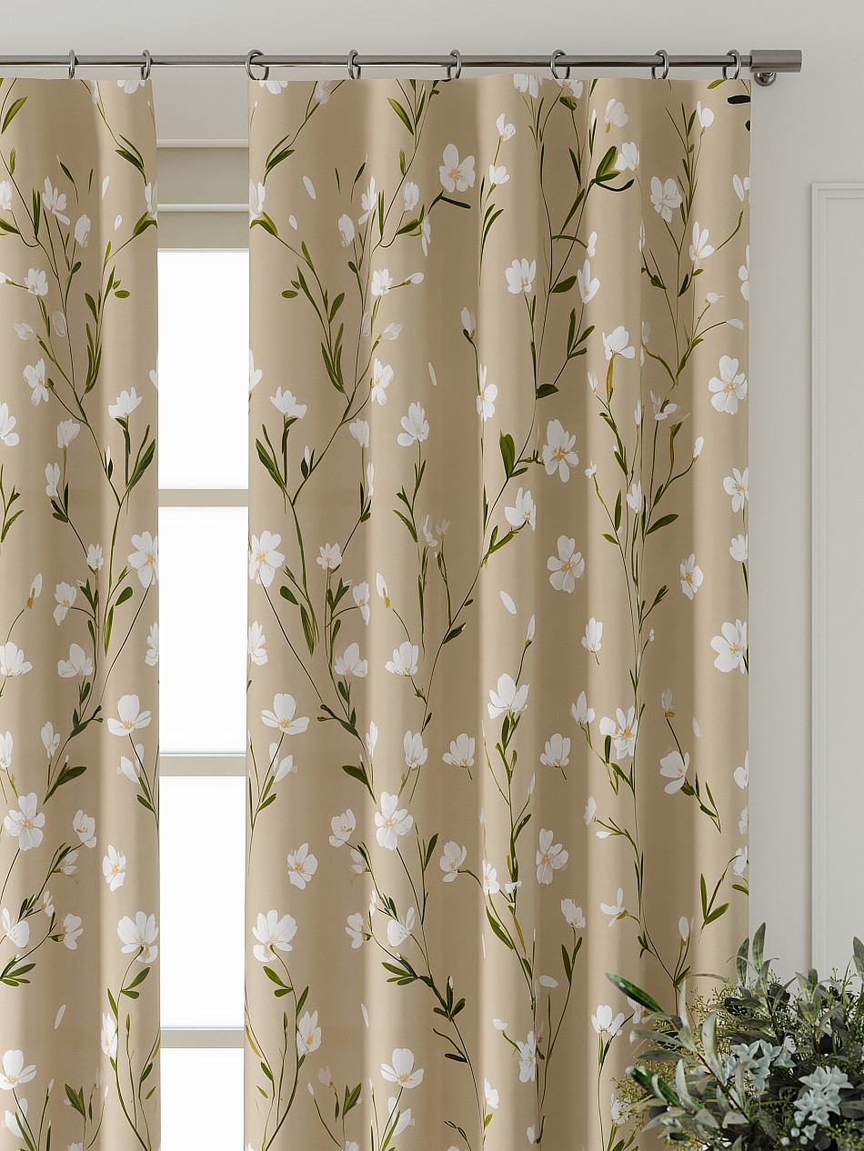 По верхнему краю портьеры пришита шторная тесьма 6 см, с ее помощью затянув узелки от кордовых нитей с обеих сторон и стянув их до нужного размера можно сформировать округлые складки, далее вставить крючки в кармашки и повесить на карниз. Обязательно проверьте кордовые нити – они должны быть надежно завязаны, в противном случае во время стягивания они могут вылететь. Шторная тесьма имеет два ряда кармашков, с их помощью можно регулировать не только длину, но и ширину. Такое крепление подходит для всех типов карнизов.