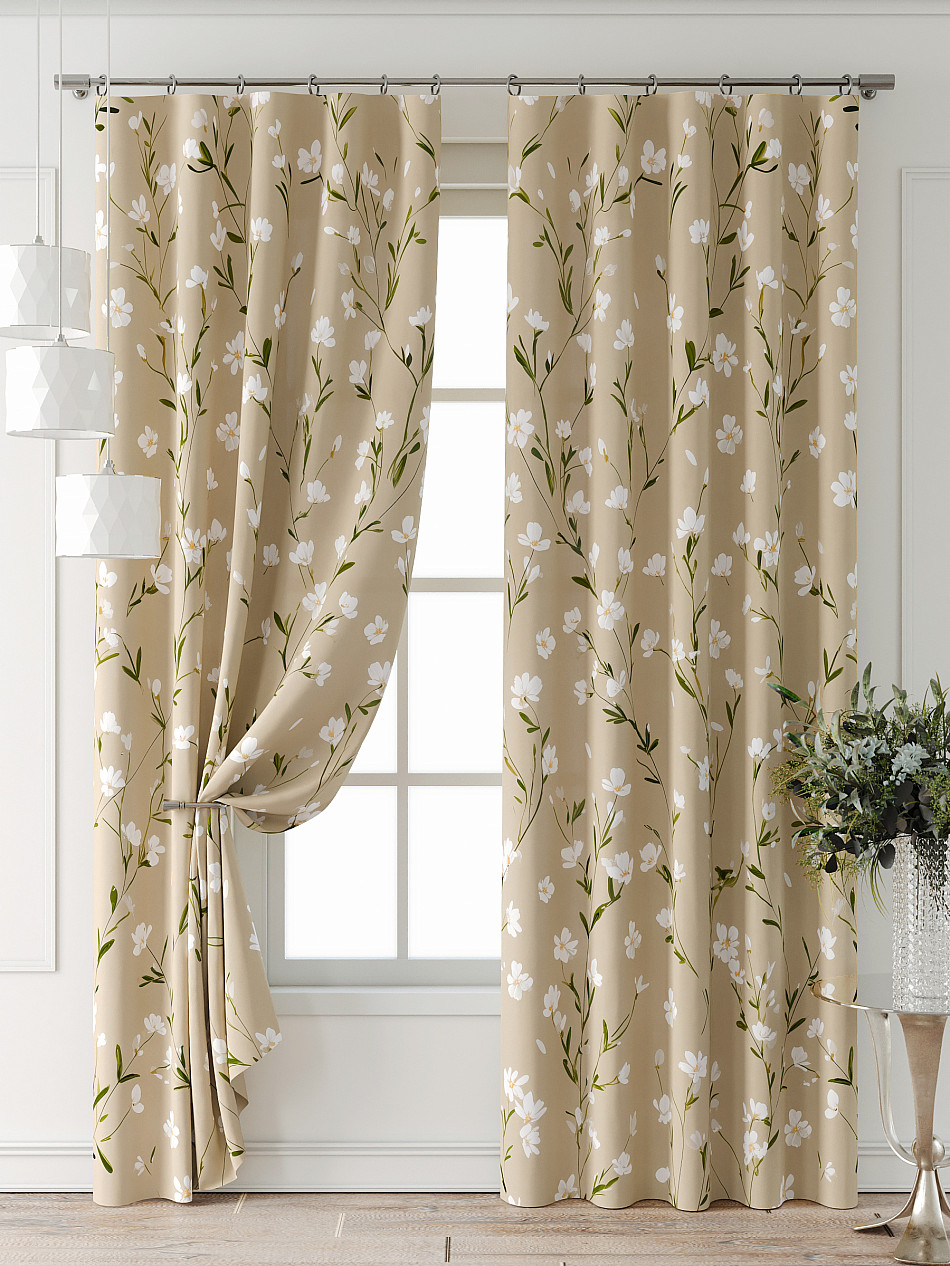 Портьера 2 шт. Подхват - доп.услуга. Комплект штор из легкой портьерной ткани (габардин) оформлен печатным рисунком. Печатный рисунок дает широкие возможности обновить интерьер фактически нет требуя ремонта за счет огромного выбора. Ткани с печатным рисунком безопасны и не содержат токсичных веществ. Не смотря на то что, материал легкий, он имеет высокую плотность, мало загрязнятся и не требует особого ухода даже после стирки, что важно для кухонных занавесок. Шторы не выцветают, не растягиваются, превосходно драпируются, образуя струящиеся складки. Прекрасное решение для создания красоты и уюта с помощью уникальных дизайнов.