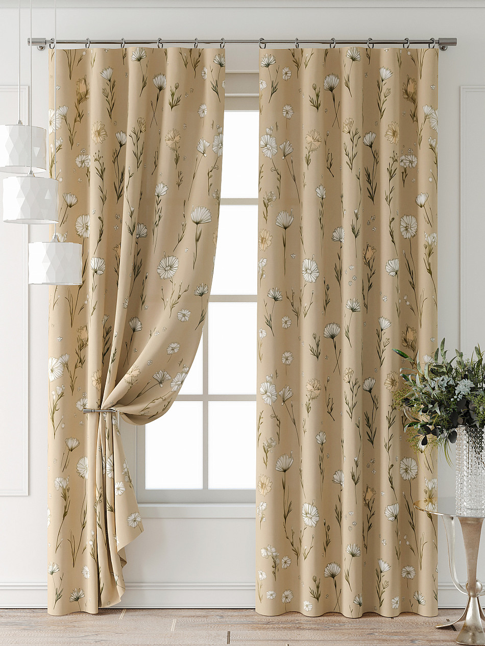 Портьера 2 шт. Подхват - доп.услуга. Комплект штор из легкой портьерной ткани (габардин) оформлен печатным рисунком. Печатный рисунок дает широкие возможности обновить интерьер фактически нет требуя ремонта за счет огромного выбора. Ткани с печатным рисунком безопасны и не содержат токсичных веществ. Не смотря на то что, материал легкий, он имеет высокую плотность, мало загрязнятся и не требует особого ухода даже после стирки, что важно для кухонных занавесок. Шторы не выцветают, не растягиваются, превосходно драпируются, образуя струящиеся складки. Прекрасное решение для создания красоты и уюта с помощью уникальных дизайнов.