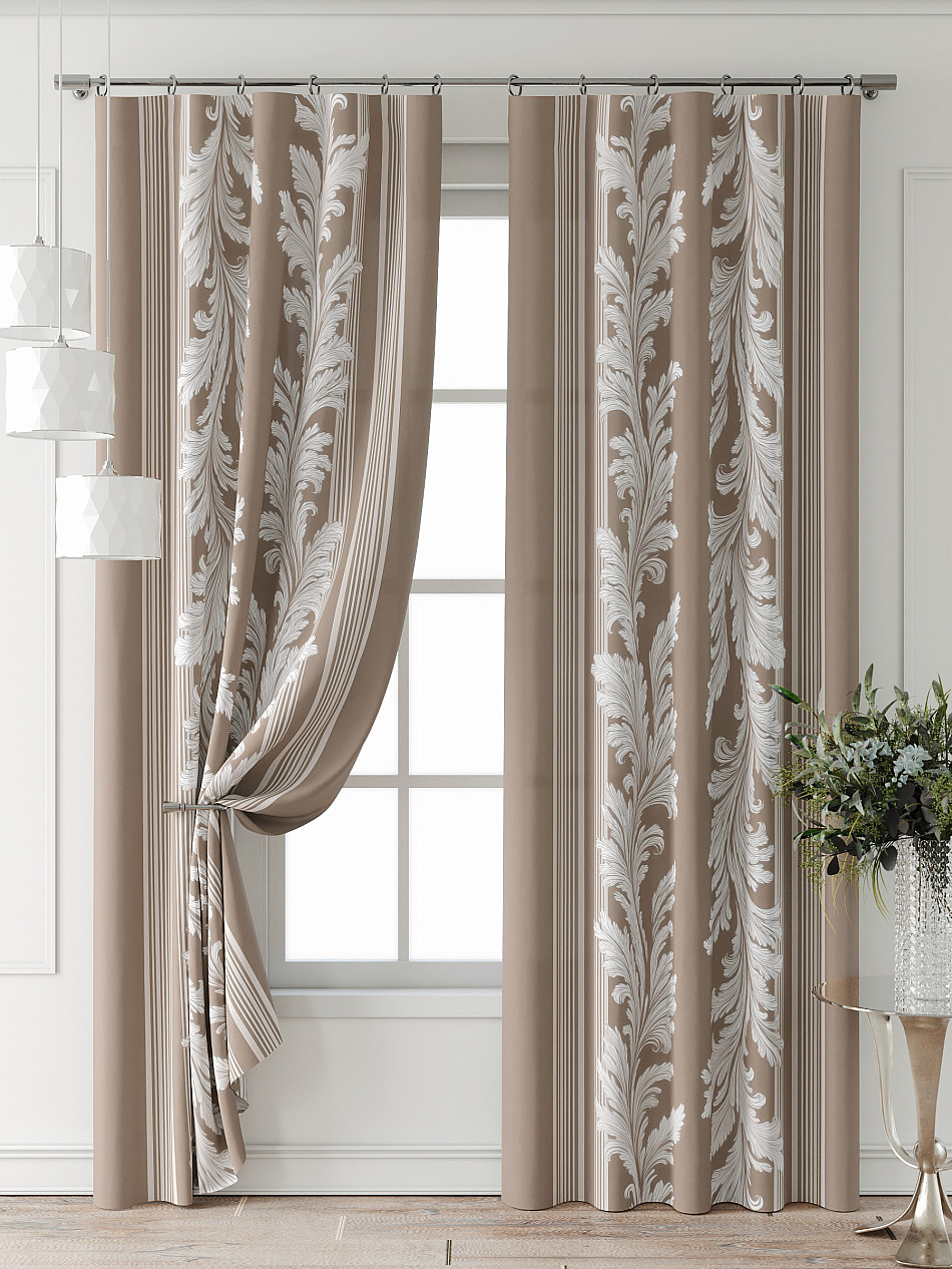 Портьера 2 шт. Подхват - доп.услуга. Комплект штор из легкой портьерной ткани (габардин) оформлен печатным рисунком. Печатный рисунок дает широкие возможности обновить интерьер фактически нет требуя ремонта за счет огромного выбора. Ткани с печатным рисунком безопасны и не содержат токсичных веществ. Не смотря на то что, материал легкий, он имеет высокую плотность, мало загрязнятся и не требует особого ухода даже после стирки, что важно для кухонных занавесок. Шторы не выцветают, не растягиваются, превосходно драпируются, образуя струящиеся складки. Прекрасное решение для создания красоты и уюта с помощью уникальных дизайнов.