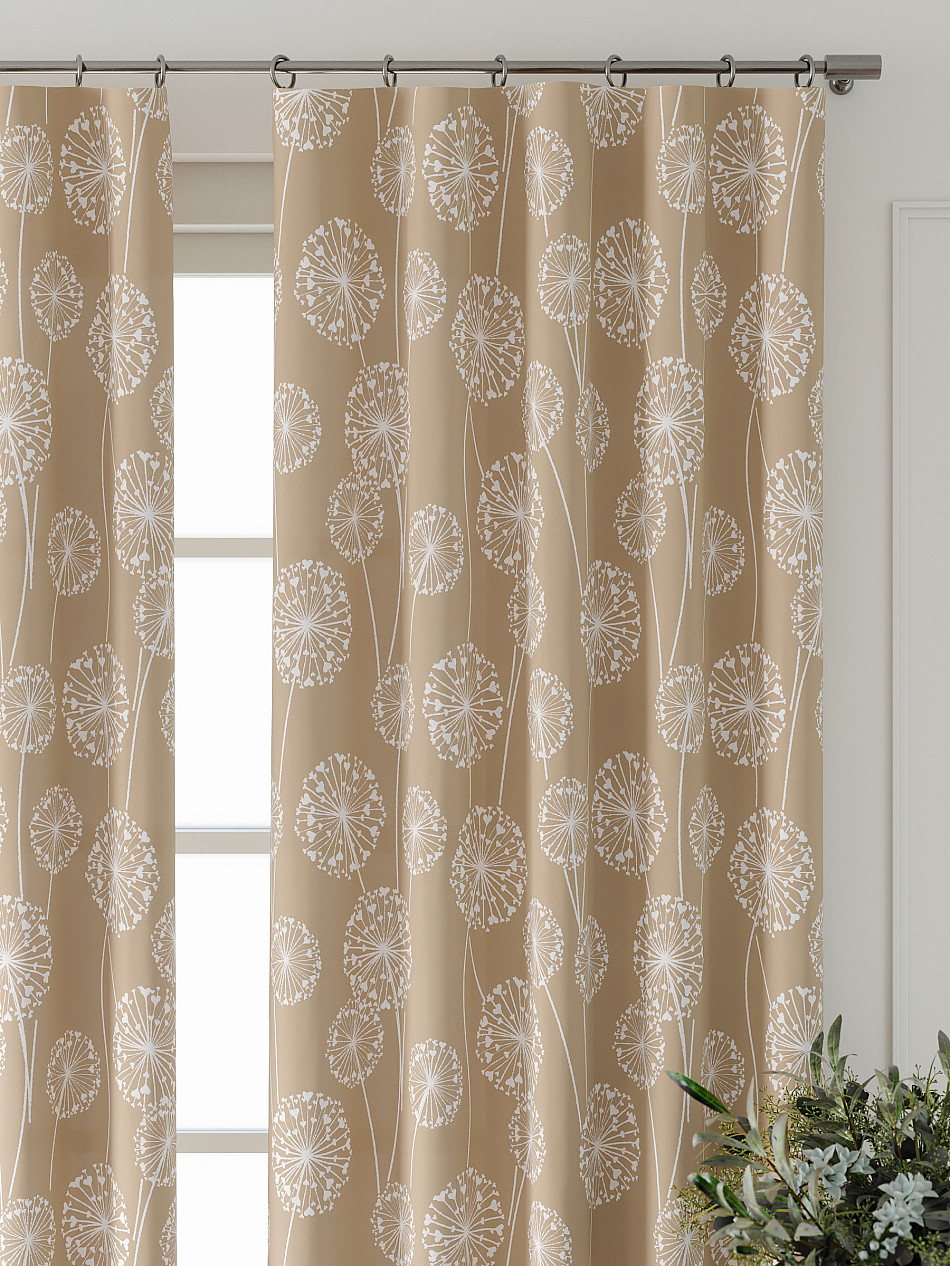 По верхнему краю портьер пришита шторная тесьма 6 см, с ее помощью затянув узелки от кордовых нитей с обеих сторон и стянув их до нужного размера можно сформировать округлые складки, далее вставить крючки в кармашки и повесить на карниз. Обязательно проверьте кордовые нити – они должны быть надежно завязаны, в противном случае во время стягивания они могут вылететь. Шторная тесьма имеет два ряда кармашков, с их помощью можно регулировать не только длину, но и ширину. Такое крепление подходит для всех типов карнизов.
