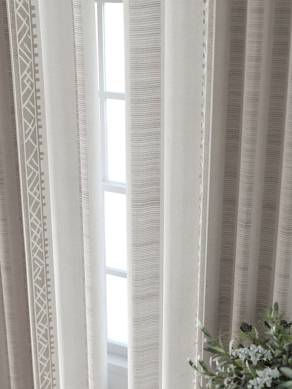 По верхнему краю портьер пришита шторная тесьма 6 см, с ее помощью затянув узелки от кордовых нитей с обеих сторон и стянув их до нужного размера можно сформировать округлые складки, далее вставить крючки в кармашки и повесить на карниз. Обязательно проверьте кордовые нити – они должны быть надежно завязаны, в противном случае во время стягивания они могут вылететь. Шторная тесьма имеет два ряда кармашков, с их помощью можно регулировать не только длину, но и ширину. Такое крепление подходит для всех типов карнизов.