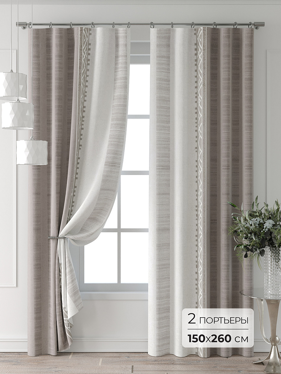 Портьера 150х260 см. — 2 шт. ( Изменить высоту) Крепление: шторная лента (крючки) Подробнее