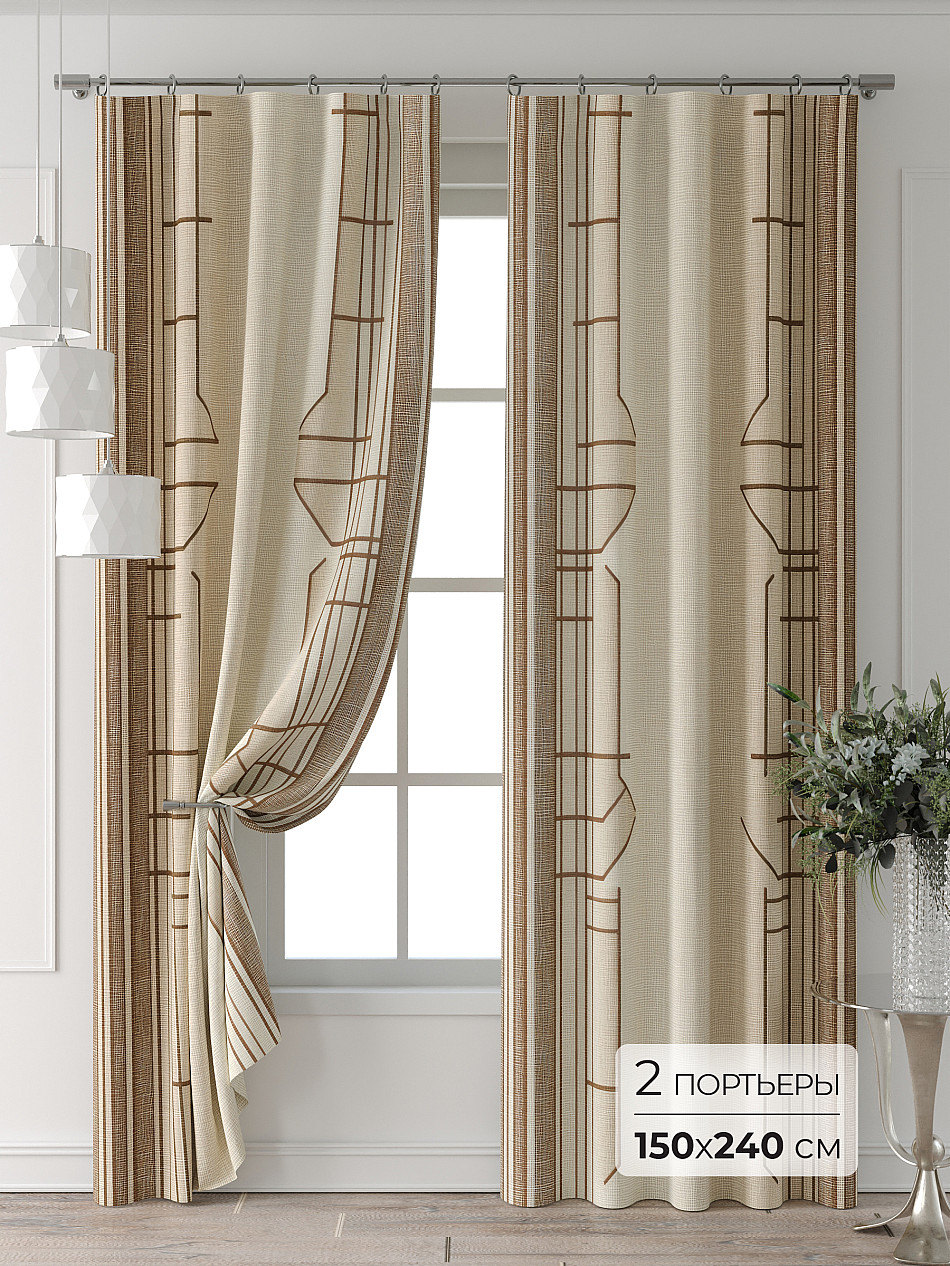 Портьера 150х240 см — 2 шт. ( Изменить высоту) Крепление: шторная лента (крючки), кулиска Подробнее