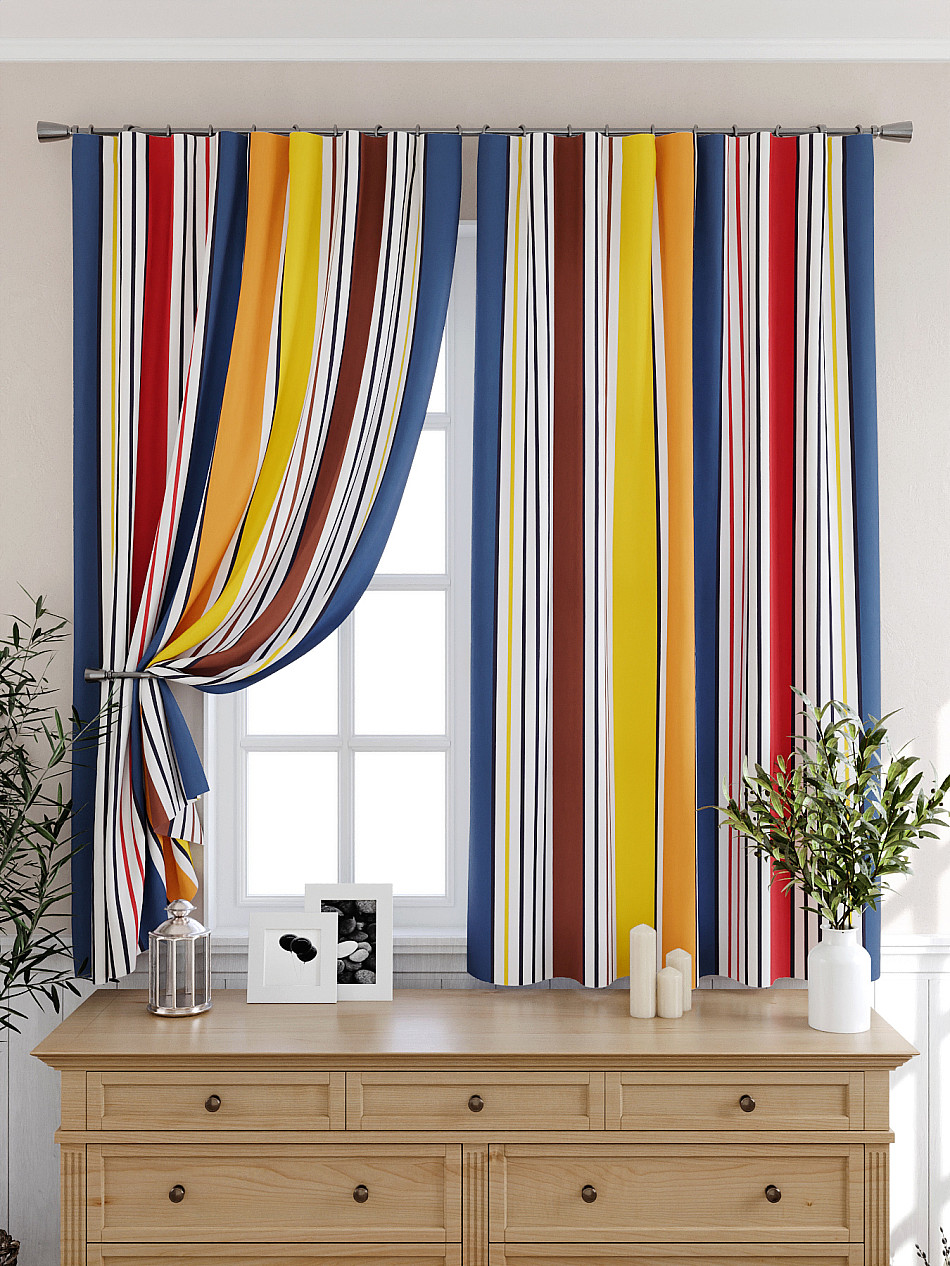 Портьеры 2 шт: Комплект штор из легкой портьерной ткани (габардин) оформлен печатным рисунком. Печатный рисунок дает широкие возможности обновить интерьер фактически нет требуя ремонта за счет огромного выбора. Ткани с печатным рисунком безопасны и не содержат токсичных веществ. Не смотря на то что, материал легкий, он имеет высокую плотность, мало загрязнятся и не требует особого ухода даже после стирки, что важно для кухонных занавесок. Шторы не выцветают, не растягиваются, превосходно драпируются, образуя струящиеся складки. Прекрасное решение для создания красоты и уюта с помощью уникальных дизайнов.