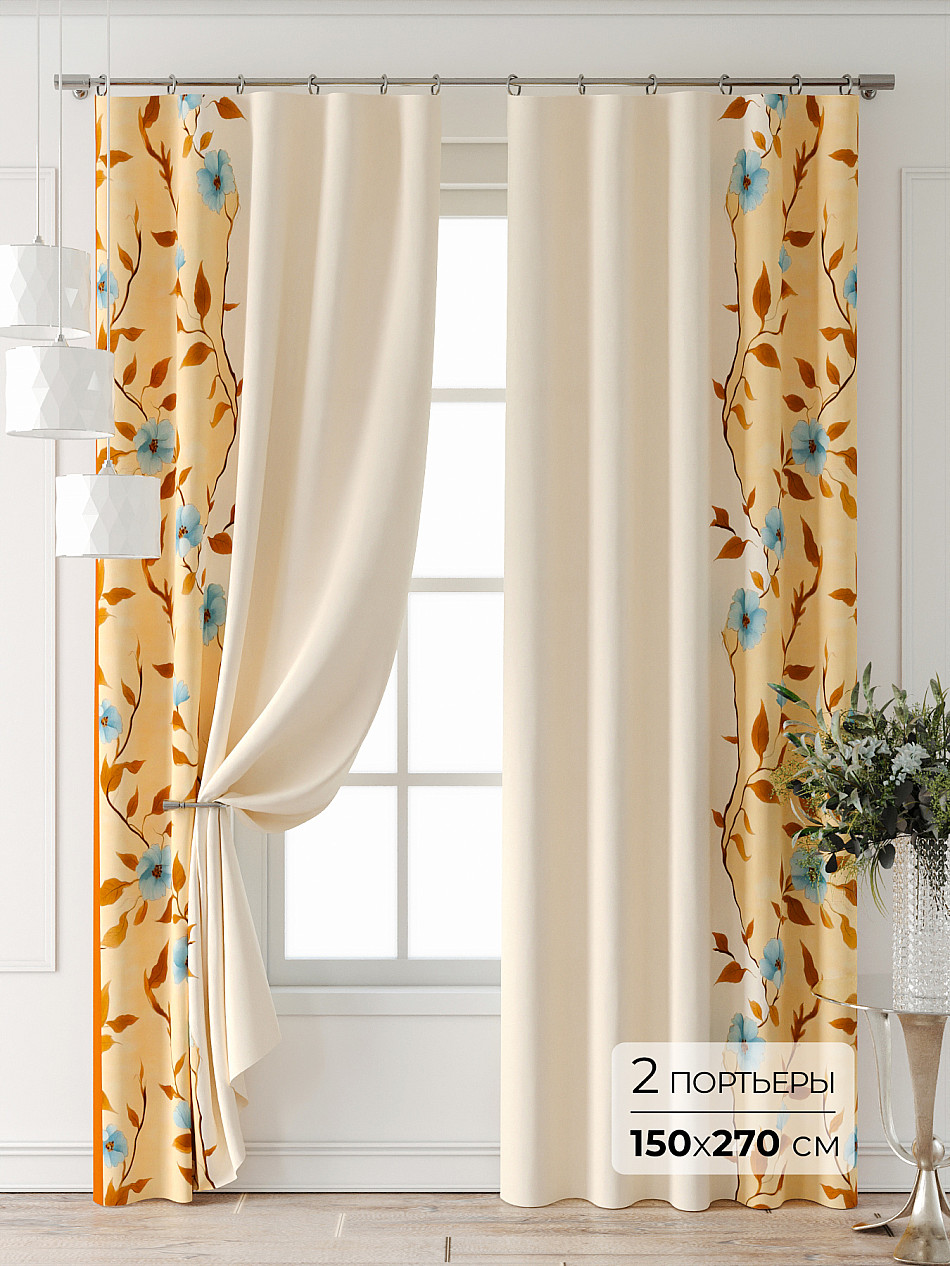 Портьера 150х270 см. — 2 шт. ( Изменить высоту) Крепление: шторная лента (крючки), кулиска Подробнее