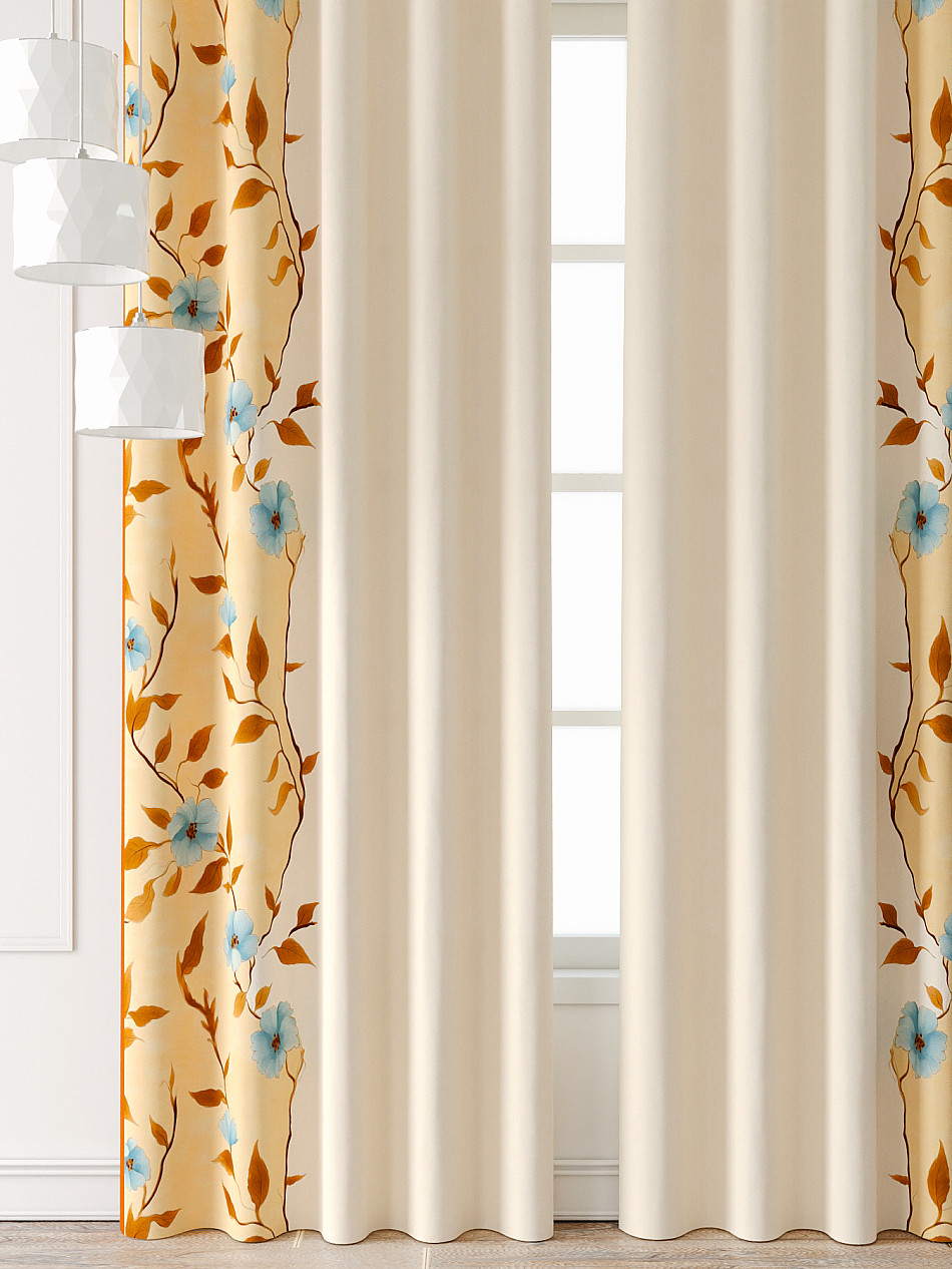 Комплект штор из легкой портьерной ткани (габардин) оформлен печатным рисунком. Печатный рисунок дает широкие возможности обновить интерьер фактически нет требуя ремонта за счет огромного выбора. Ткани с печатным рисунком безопасны и не содержат токсичных веществ. Не смотря на то что, материал легкий, он имеет высокую плотность, мало загрязнятся и не требует особого ухода даже после стирки, что важно для кухонных занавесок. Шторы не выцветают, не растягиваются, превосходно драпируются, образуя струящиеся складки. Прекрасное решение для создания красоты и уюта с помощью уникальных дизайнов.