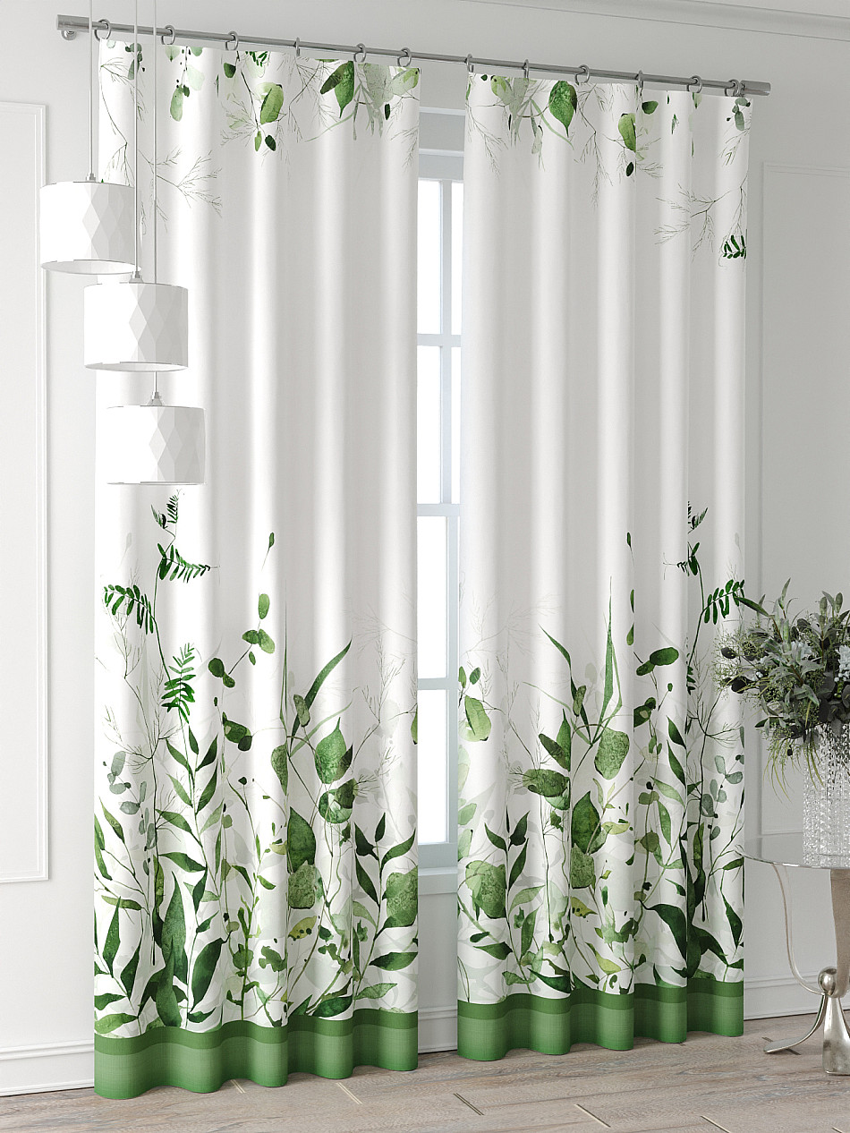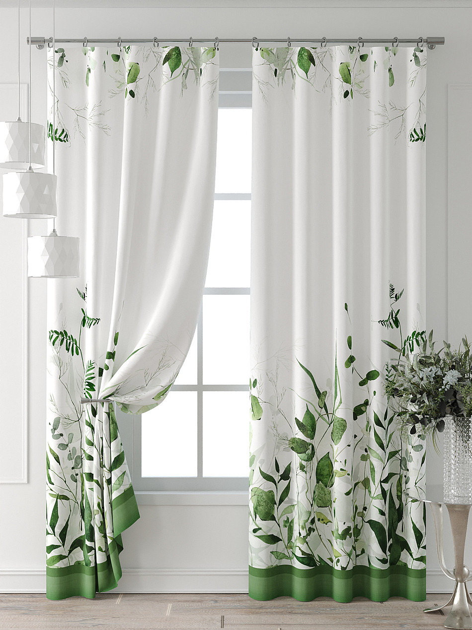 Комплект штор из легкой портьерной ткани (габардин) оформлен печатным рисунком. Печатный рисунок дает широкие возможности обновить интерьер фактически нет требуя ремонта за счет огромного выбора. Ткани с печатным рисунком безопасны и не содержат токсичных веществ. Не смотря на то что, материал легкий, он имеет высокую плотность, мало загрязнятся и не требует особого ухода даже после стирки, что важно для кухонных занавесок. Шторы не выцветают, не растягиваются, превосходно драпируются, образуя струящиеся складки. Прекрасное решение для создания красоты и уюта с помощью уникальных дизайнов.