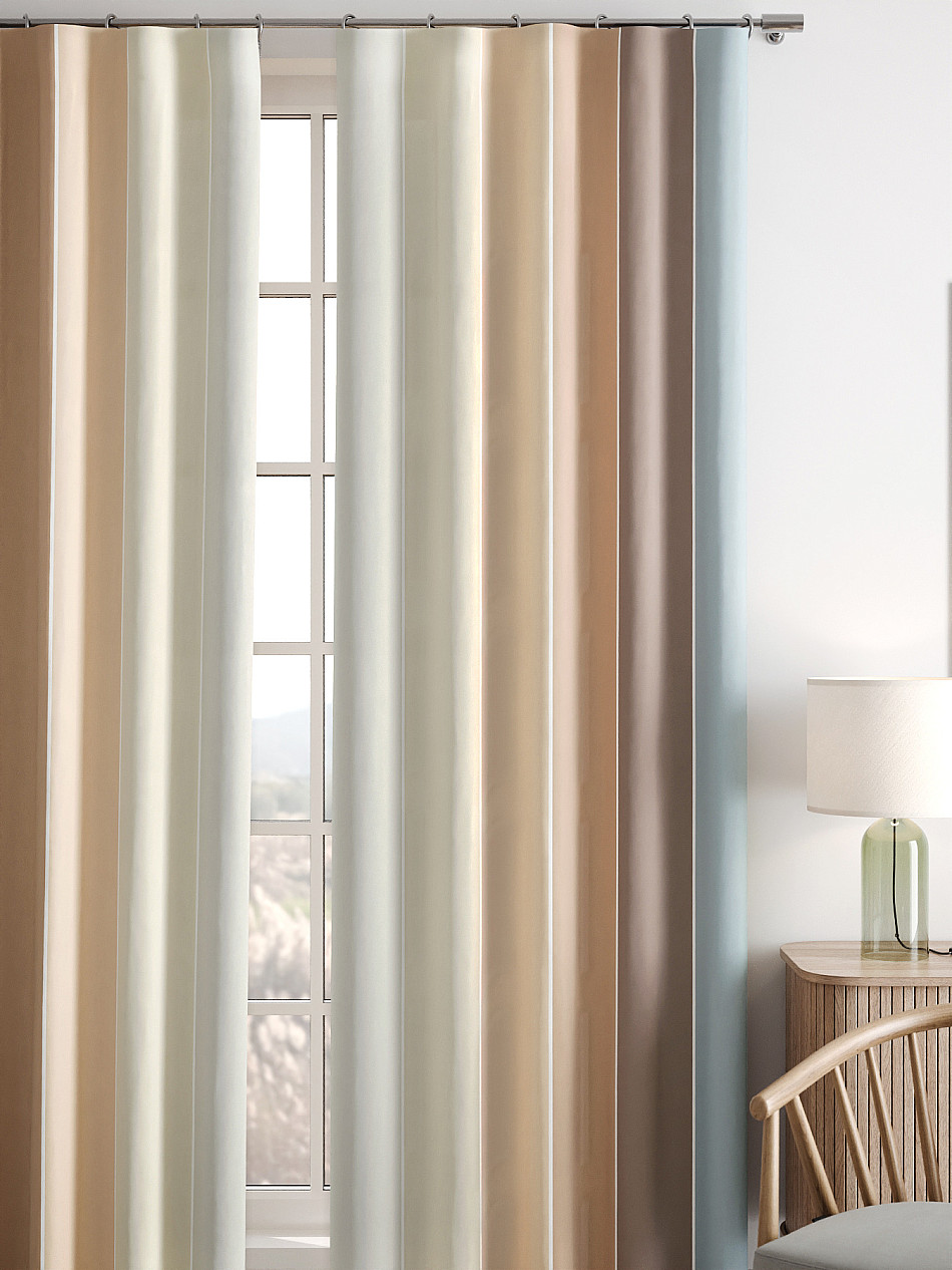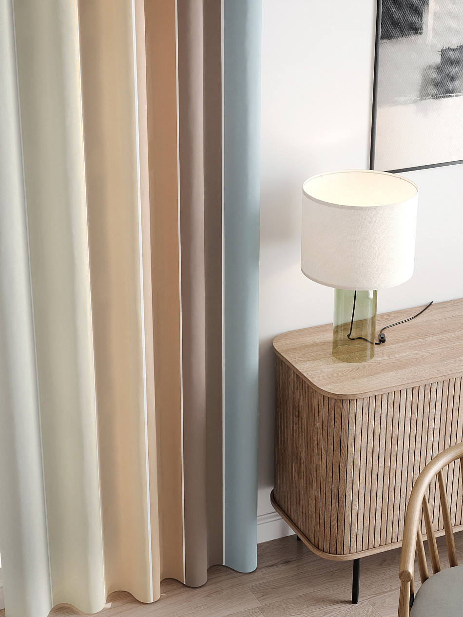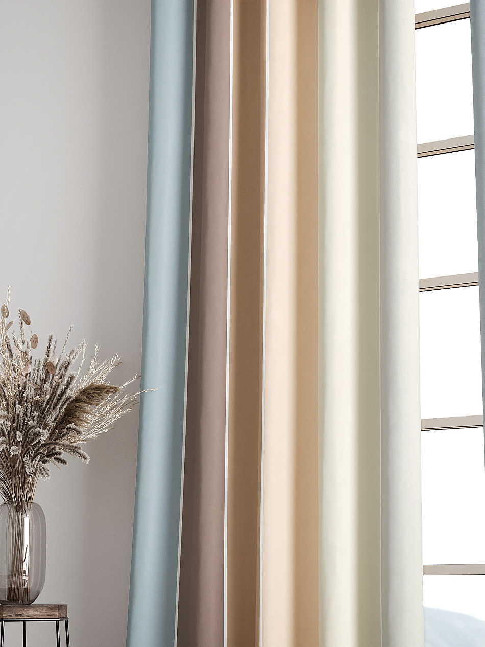 Габардин представляет собой целую группу тканей, которые отличаются содержанием и сочетанием различных волокон – хлопка, шелка, шерсти или синтетики. В зависимости от состава материала, шторы из габардина могут быть разными по плотности и внешнему виду, но всегда отличаются характерным декоративным рубчиком на поверхности. Габардин – идеальная ткань для пошива штор, поскольку она отлично дышит, не мнется, легкая и мягкая на ощупь, но при этом прочная и хорошо защищает от солнечных лучей.