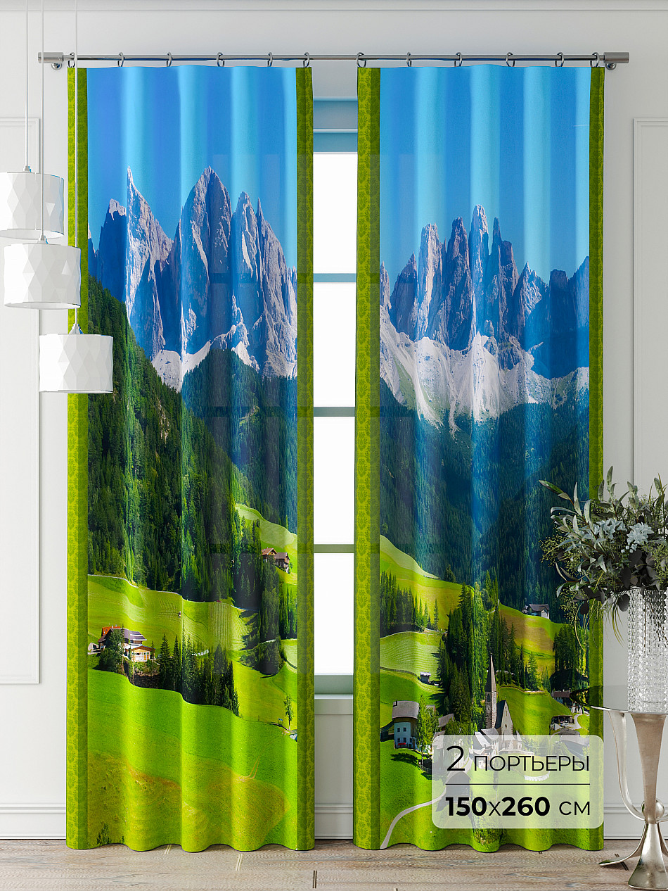 Портьера 2 шт. Подхват - доп.услуга. Комплект штор из легкой портьерной ткани (габардин) оформлен печатным рисунком. Печатный рисунок дает широкие возможности обновить интерьер фактически нет требуя ремонта за счет огромного выбора. Ткани с печатным рисунком безопасны и не содержат токсичных веществ. Не смотря на то что, материал легкий, он имеет высокую плотность, мало загрязнятся и не требует особого ухода даже после стирки, что важно для кухонных занавесок. Шторы не выцветают, не растягиваются, превосходно драпируются, образуя струящиеся складки. Прекрасное решение для создания красоты и уюта с помощью уникальных дизайнов.