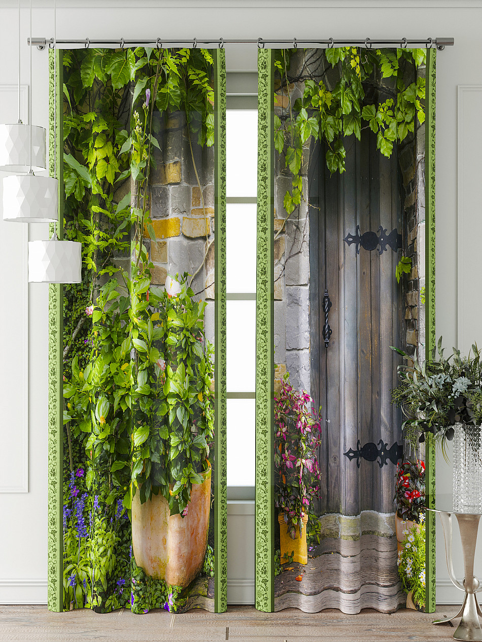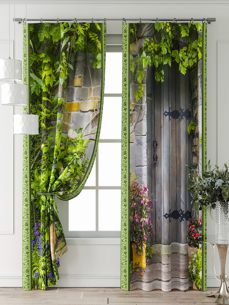 Портьера 2 шт. Подхват - доп.услуга. Комплект штор из легкой портьерной ткани (габардин) оформлен печатным рисунком. Печатный рисунок дает широкие возможности обновить интерьер фактически нет требуя ремонта за счет огромного выбора. Ткани с печатным рисунком безопасны и не содержат токсичных веществ. Не смотря на то что, материал легкий, он имеет высокую плотность, мало загрязнятся и не требует особого ухода даже после стирки, что важно для кухонных занавесок. Шторы не выцветают, не растягиваются, превосходно драпируются, образуя струящиеся складки. Прекрасное решение для создания красоты и уюта с помощью уникальных дизайнов.
