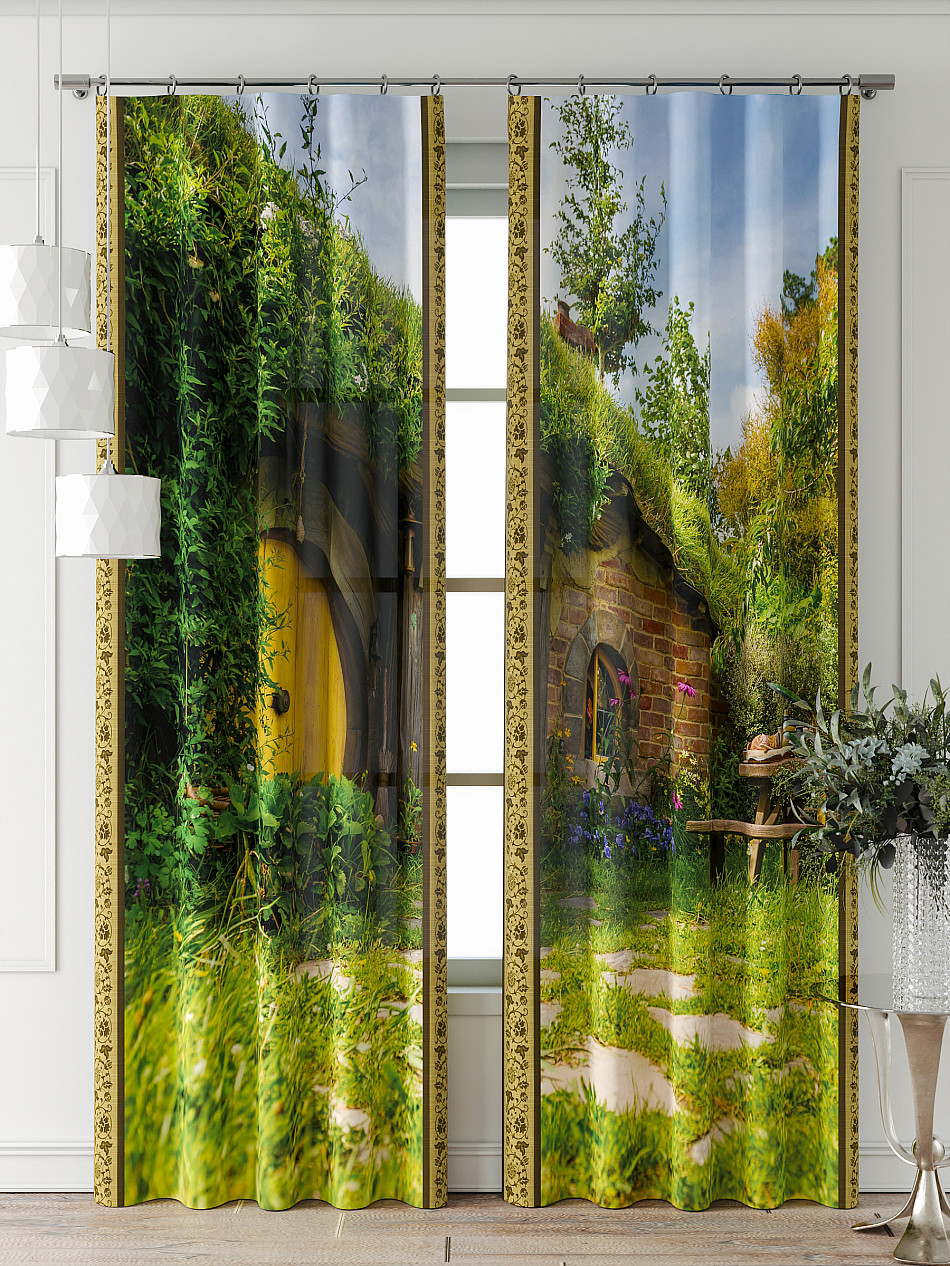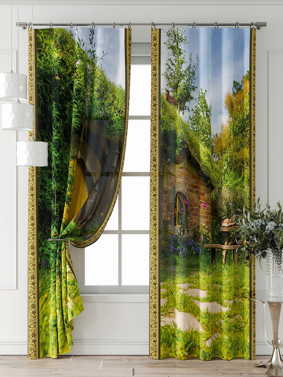 Портьера 2 шт. Подхват - доп.услуга. Комплект штор из легкой портьерной ткани (габардин) оформлен печатным рисунком. Печатный рисунок дает широкие возможности обновить интерьер фактически нет требуя ремонта за счет огромного выбора. Ткани с печатным рисунком безопасны и не содержат токсичных веществ. Не смотря на то что, материал легкий, он имеет высокую плотность, мало загрязнятся и не требует особого ухода даже после стирки, что важно для кухонных занавесок. Шторы не выцветают, не растягиваются, превосходно драпируются, образуя струящиеся складки. Прекрасное решение для создания красоты и уюта с помощью уникальных дизайнов.