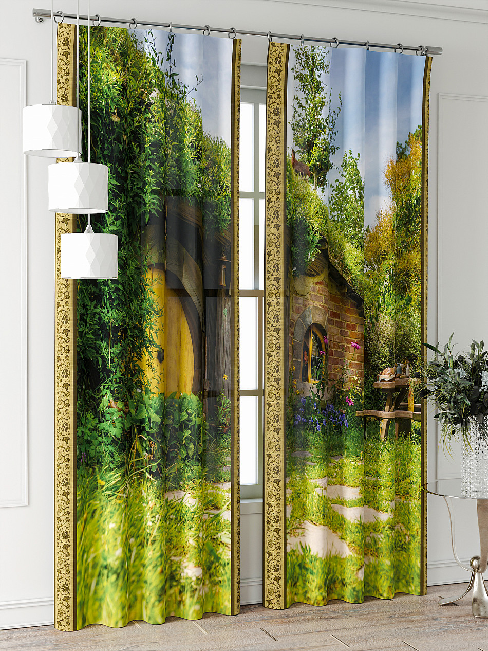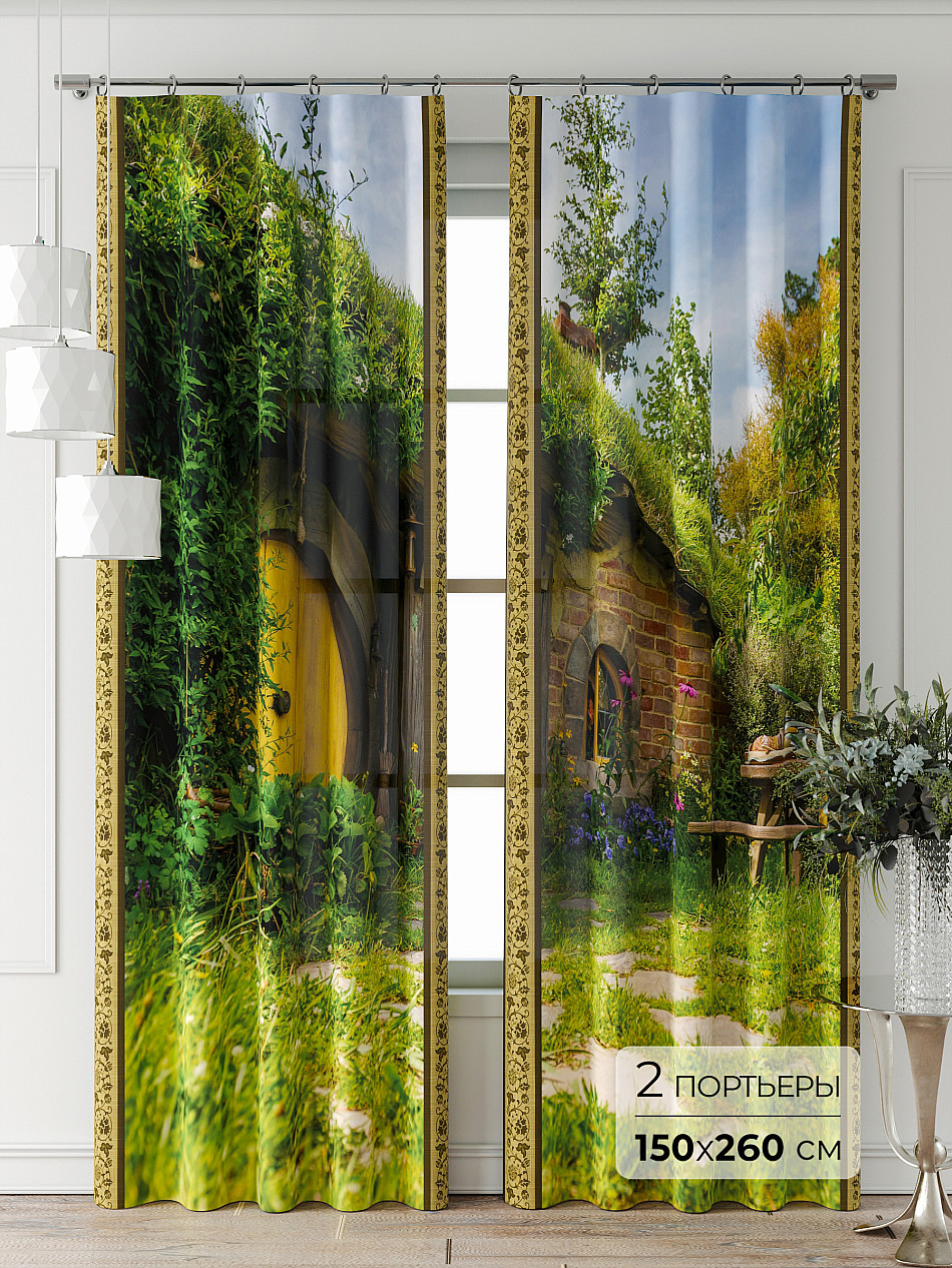 Портьера 2 шт. Подхват - доп.услуга. Комплект штор из легкой портьерной ткани (габардин) оформлен печатным рисунком. Печатный рисунок дает широкие возможности обновить интерьер фактически нет требуя ремонта за счет огромного выбора. Ткани с печатным рисунком безопасны и не содержат токсичных веществ. Не смотря на то что, материал легкий, он имеет высокую плотность, мало загрязнятся и не требует особого ухода даже после стирки, что важно для кухонных занавесок. Шторы не выцветают, не растягиваются, превосходно драпируются, образуя струящиеся складки. Прекрасное решение для создания красоты и уюта с помощью уникальных дизайнов.