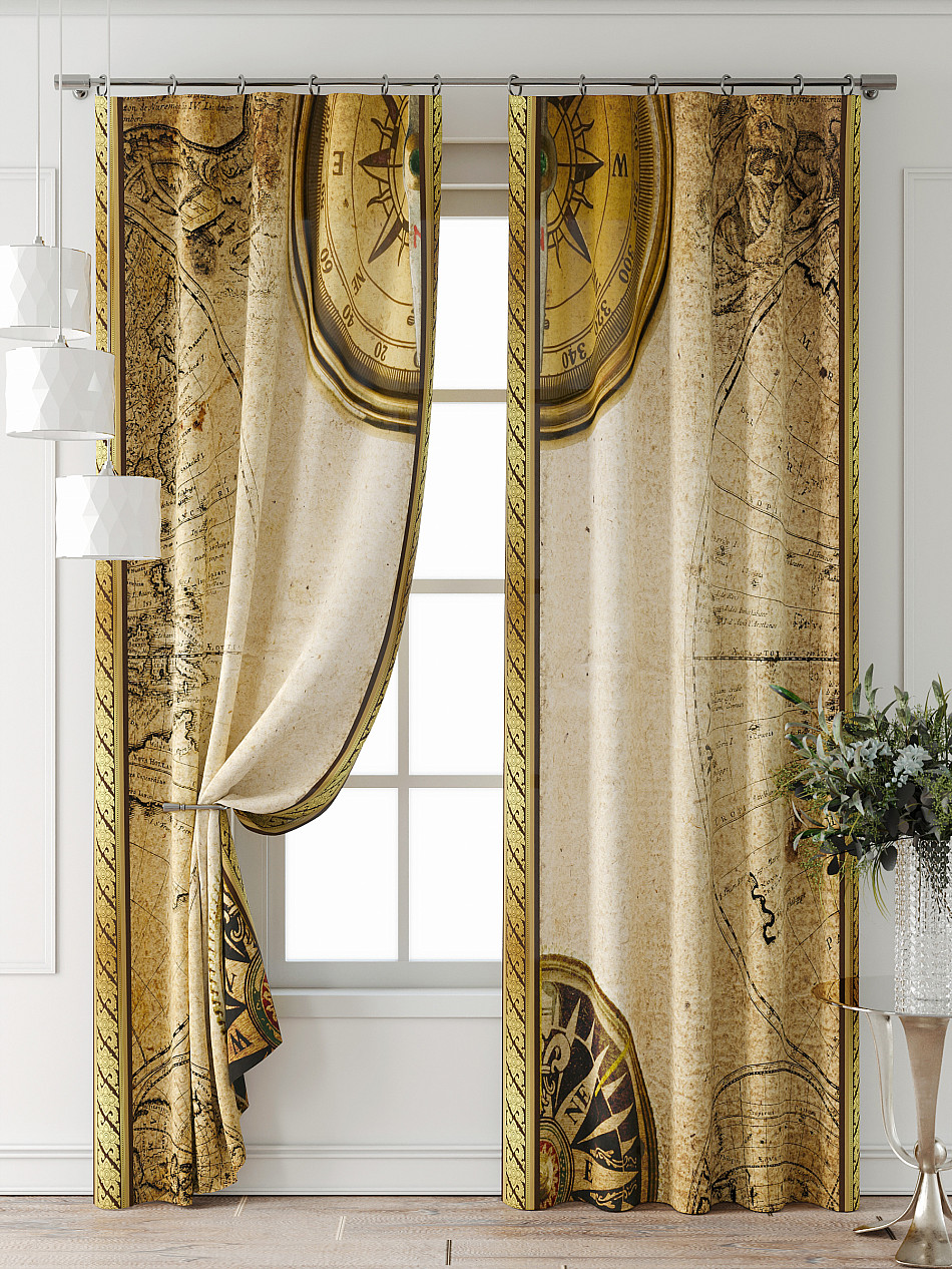 Портьера 2 шт. Подхват - доп.услуга. Комплект штор из легкой портьерной ткани (габардин) оформлен печатным рисунком. Печатный рисунок дает широкие возможности обновить интерьер фактически нет требуя ремонта за счет огромного выбора. Ткани с печатным рисунком безопасны и не содержат токсичных веществ. Не смотря на то что, материал легкий, он имеет высокую плотность, мало загрязнятся и не требует особого ухода даже после стирки, что важно для кухонных занавесок. Шторы не выцветают, не растягиваются, превосходно драпируются, образуя струящиеся складки. Прекрасное решение для создания красоты и уюта с помощью уникальных дизайнов.
