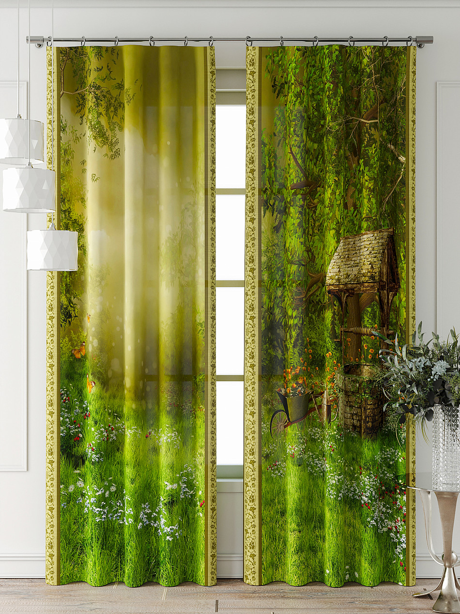 Портьера 2 шт. Подхват - доп.услуга. Комплект штор из легкой портьерной ткани (габардин) оформлен печатным рисунком. Печатный рисунок дает широкие возможности обновить интерьер фактически нет требуя ремонта за счет огромного выбора. Ткани с печатным рисунком безопасны и не содержат токсичных веществ. Не смотря на то что, материал легкий, он имеет высокую плотность, мало загрязнятся и не требует особого ухода даже после стирки, что важно для кухонных занавесок. Шторы не выцветают, не растягиваются, превосходно драпируются, образуя струящиеся складки. Прекрасное решение для создания красоты и уюта с помощью уникальных дизайнов.