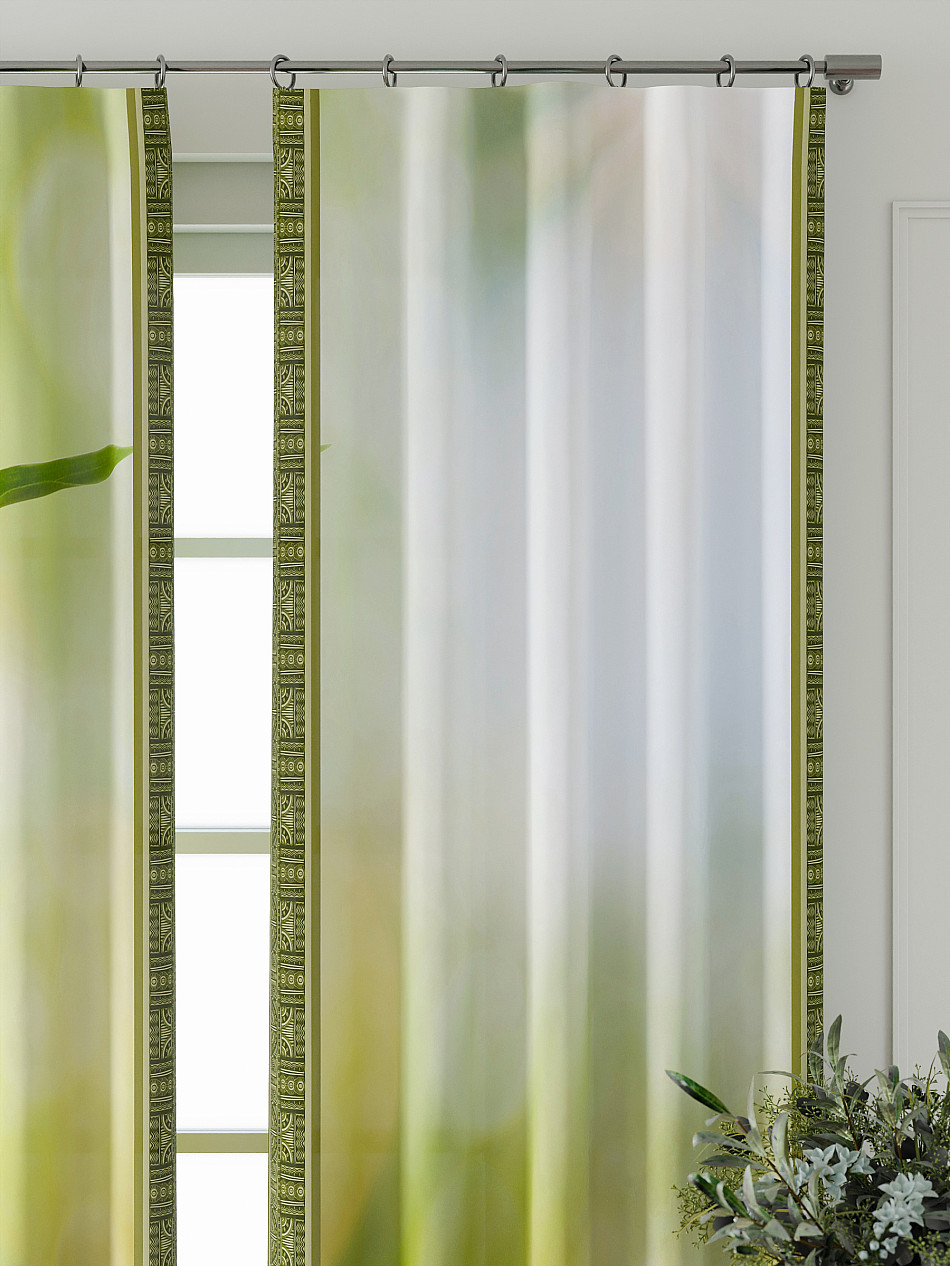 По верхнему краю портьеры пришита шторная тесьма 6 см, с ее помощью затянув узелки от кордовых нитей с обеих сторон и стянув их до нужного размера можно сформировать округлые складки, далее вставить крючки в кармашки и повесить на карниз. Обязательно проверьте кордовые нити – они должны быть надежно завязаны, в противном случае во время стягивания они могут вылететь. Шторная тесьма имеет два ряда кармашков, с их помощью можно регулировать не только длину, но и ширину. Такое крепление подходит для всех типов карнизов.