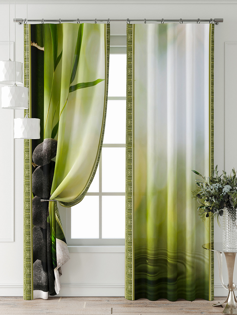 Портьера 2 шт. Подхват - доп.услуга. Комплект штор из легкой портьерной ткани (габардин) оформлен печатным рисунком. Печатный рисунок дает широкие возможности обновить интерьер фактически нет требуя ремонта за счет огромного выбора. Ткани с печатным рисунком безопасны и не содержат токсичных веществ. Не смотря на то что, материал легкий, он имеет высокую плотность, мало загрязнятся и не требует особого ухода даже после стирки, что важно для кухонных занавесок. Шторы не выцветают, не растягиваются, превосходно драпируются, образуя струящиеся складки. Прекрасное решение для создания красоты и уюта с помощью уникальных дизайнов.