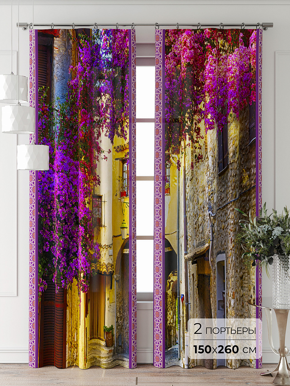 Портьера 2 шт. Подхват - доп.услуга. Комплект штор из легкой портьерной ткани (габардин) оформлен печатным рисунком. Печатный рисунок дает широкие возможности обновить интерьер фактически нет требуя ремонта за счет огромного выбора. Ткани с печатным рисунком безопасны и не содержат токсичных веществ. Не смотря на то что, материал легкий, он имеет высокую плотность, мало загрязнятся и не требует особого ухода даже после стирки, что важно для кухонных занавесок. Шторы не выцветают, не растягиваются, превосходно драпируются, образуя струящиеся складки. Прекрасное решение для создания красоты и уюта с помощью уникальных дизайнов.